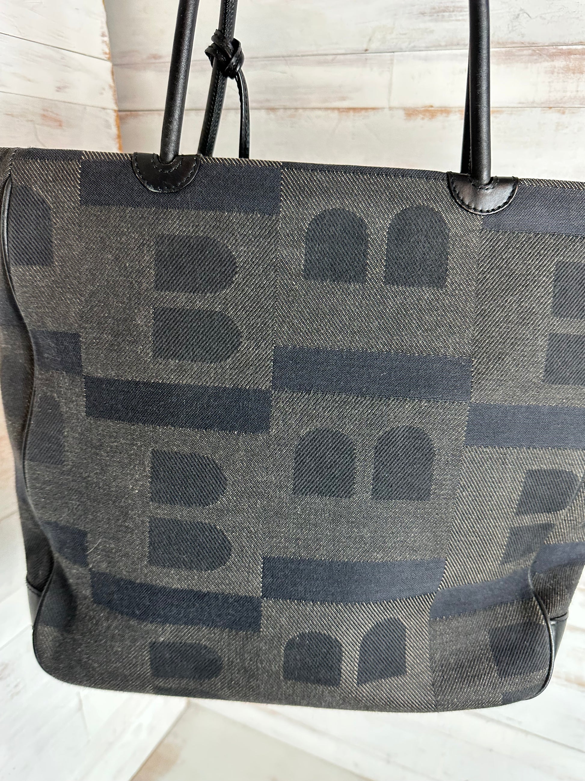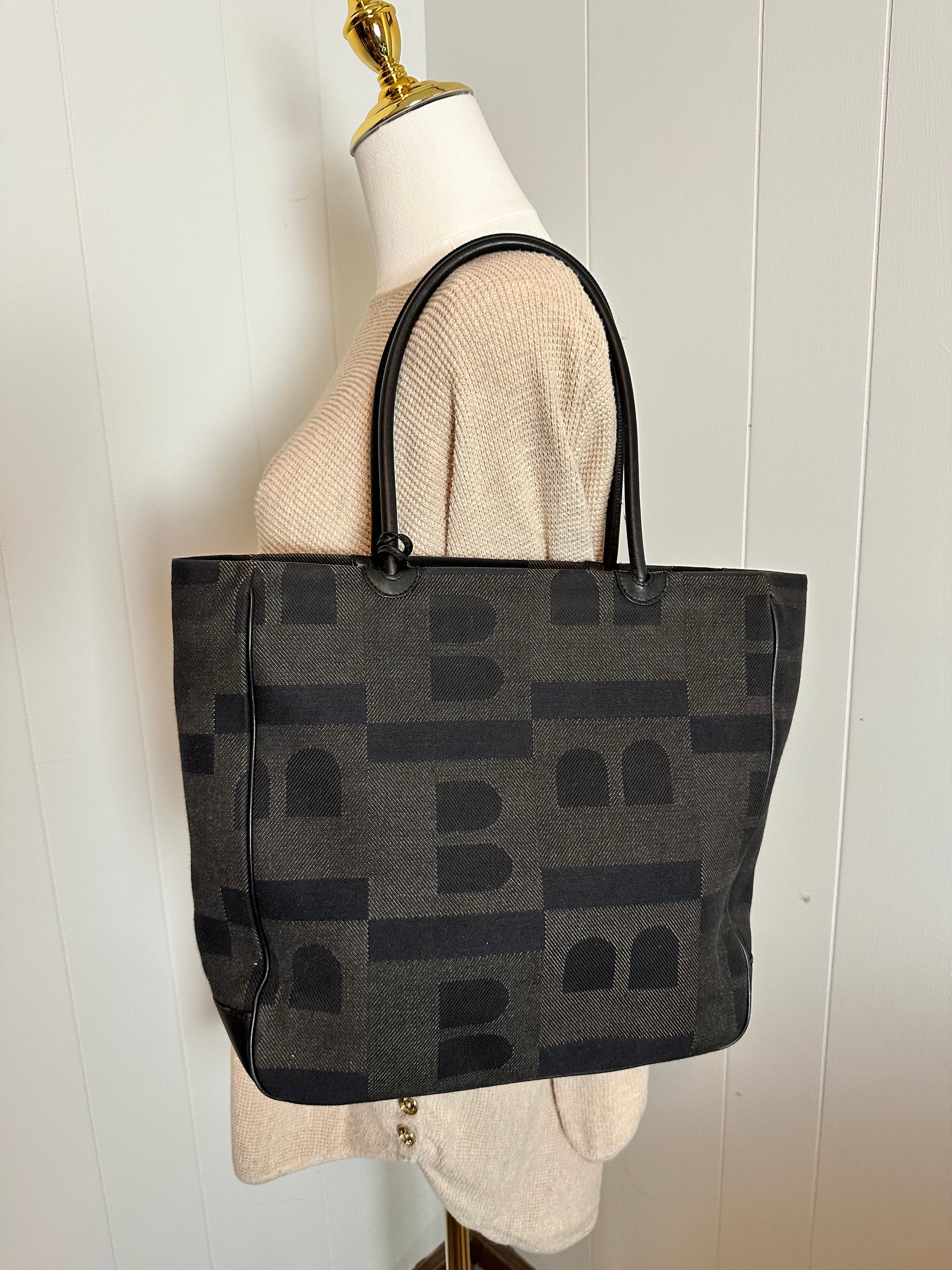 Bally Vintage Monogram "B" Shoulder Bag, Black and Gray Canvas