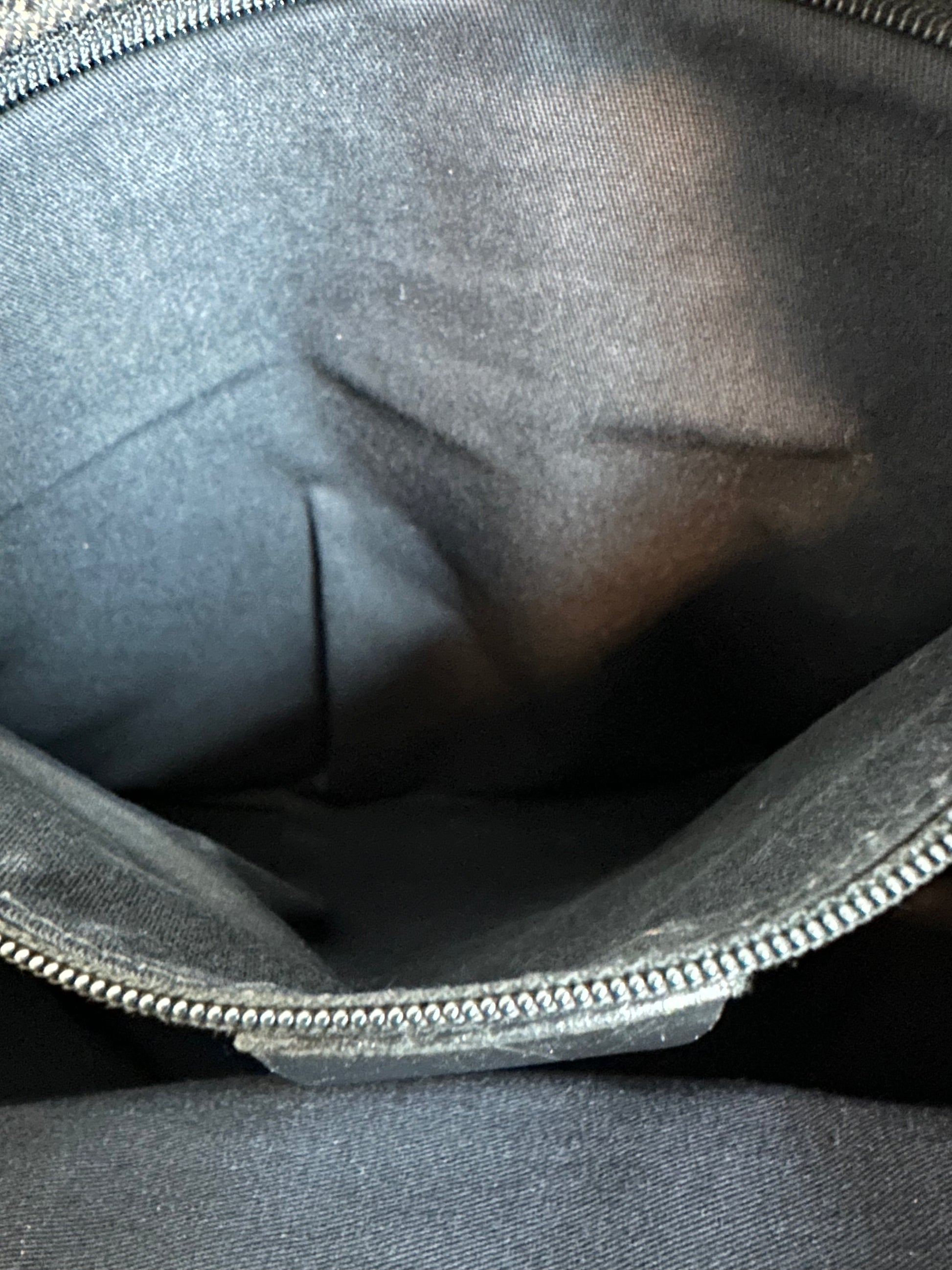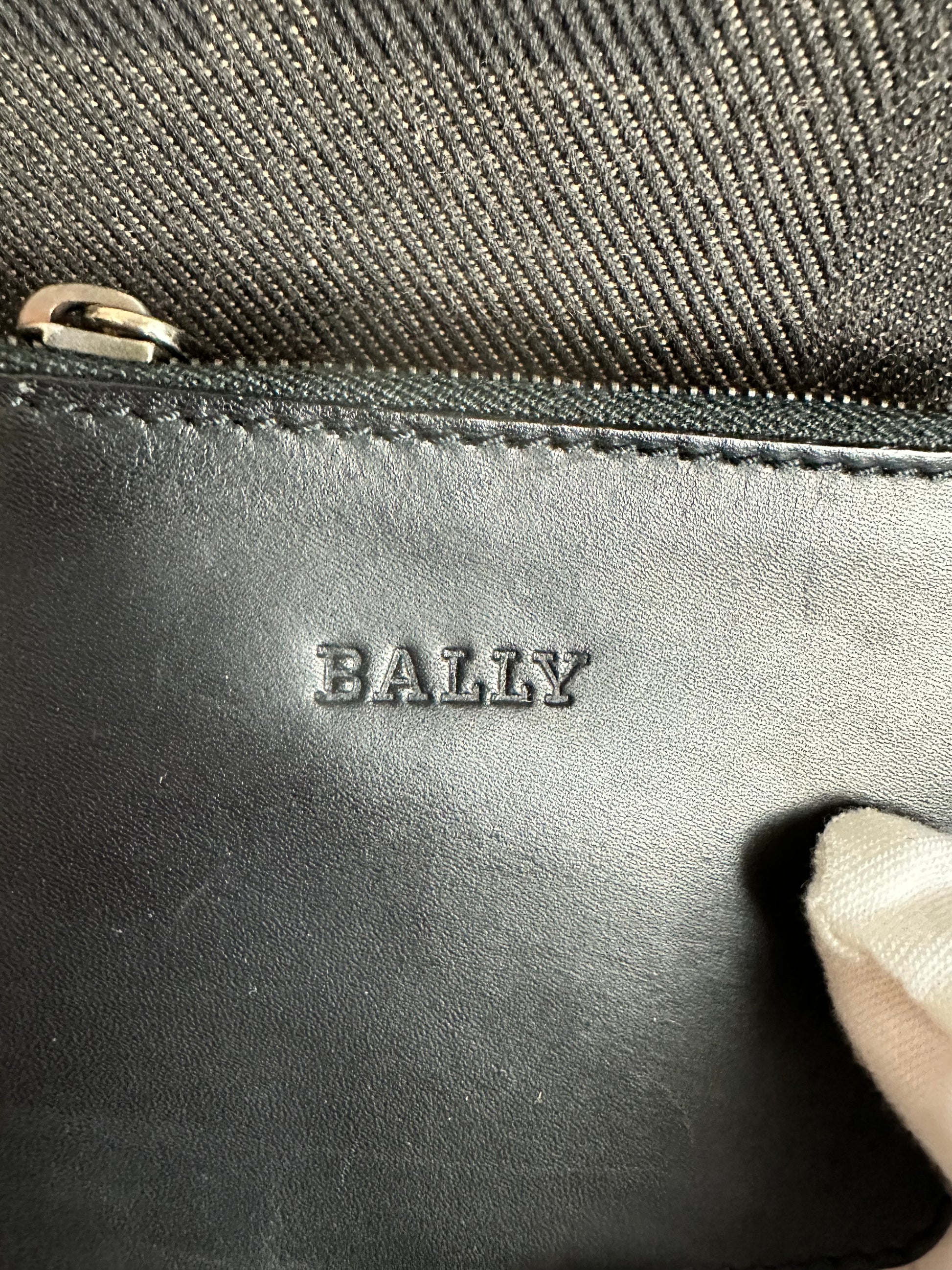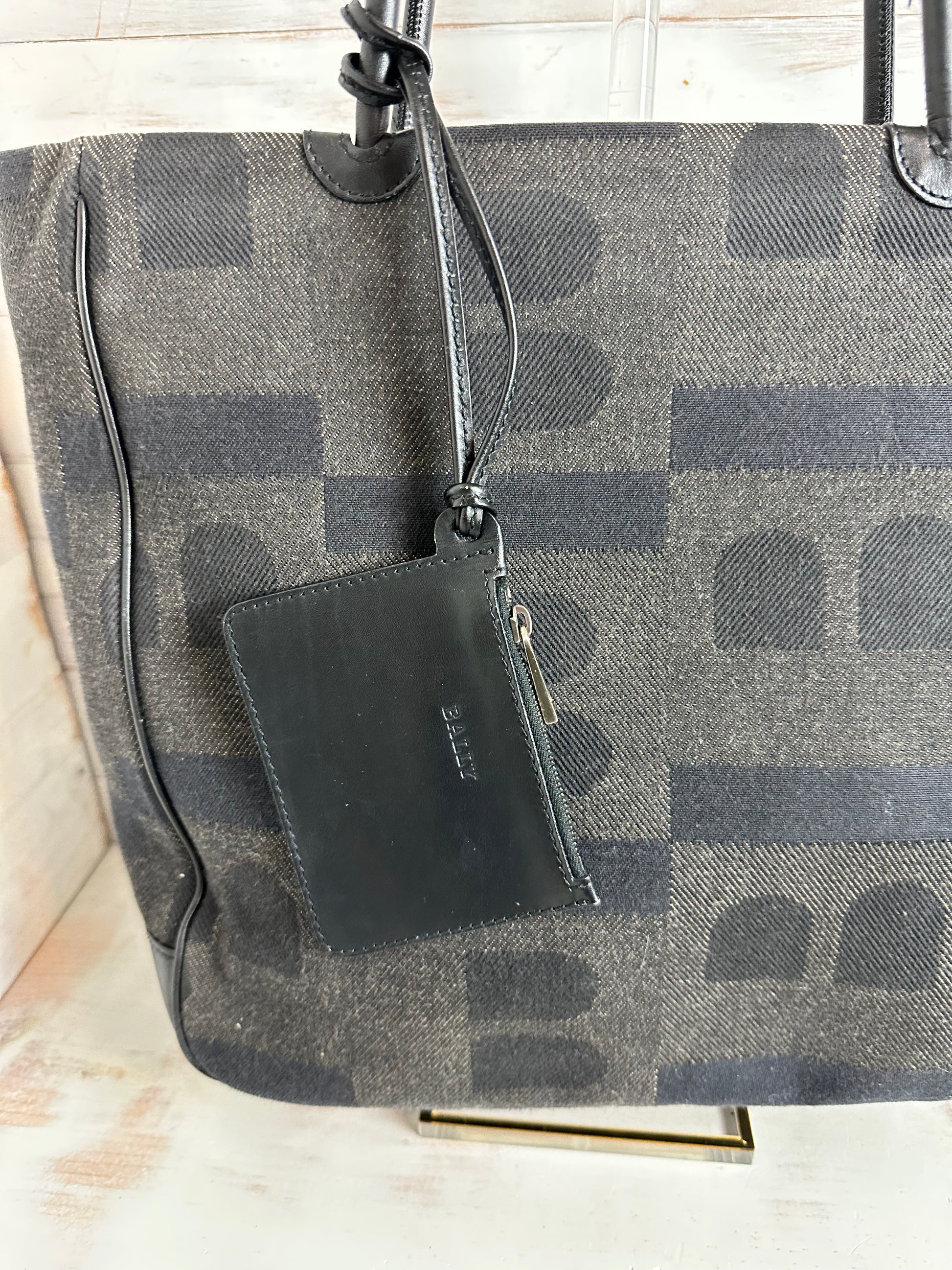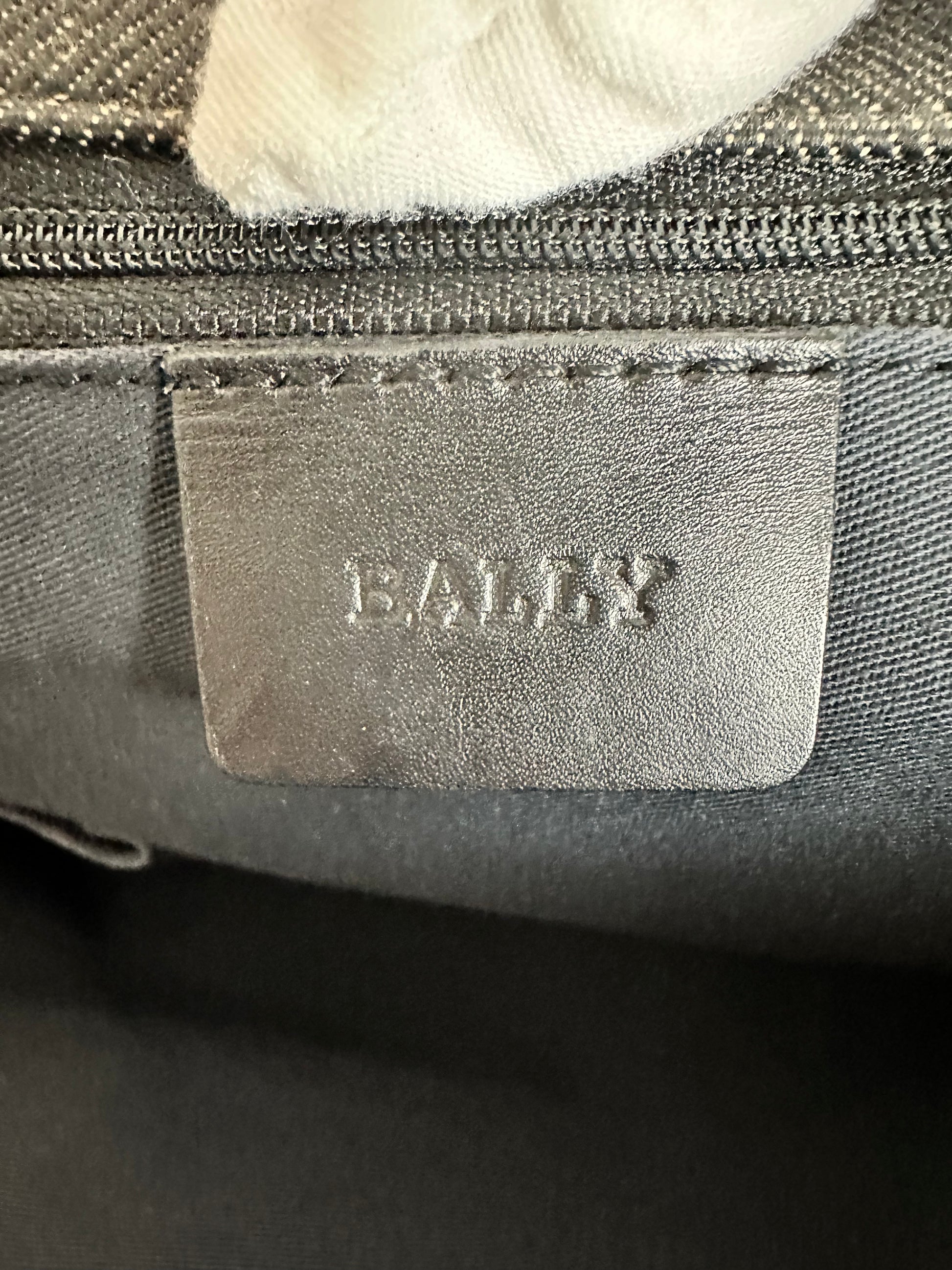 This is an awesome, black and gray canvas, Vintage Bally Monogram "B" Shoulder Bag featuring an attached, removable pouch. The bottom of this bag features black leather with 4 silver feet. Rolled leather handles. Interior features a zippered pouch and an open slip pocket. No visible signs of wear. Includes COA