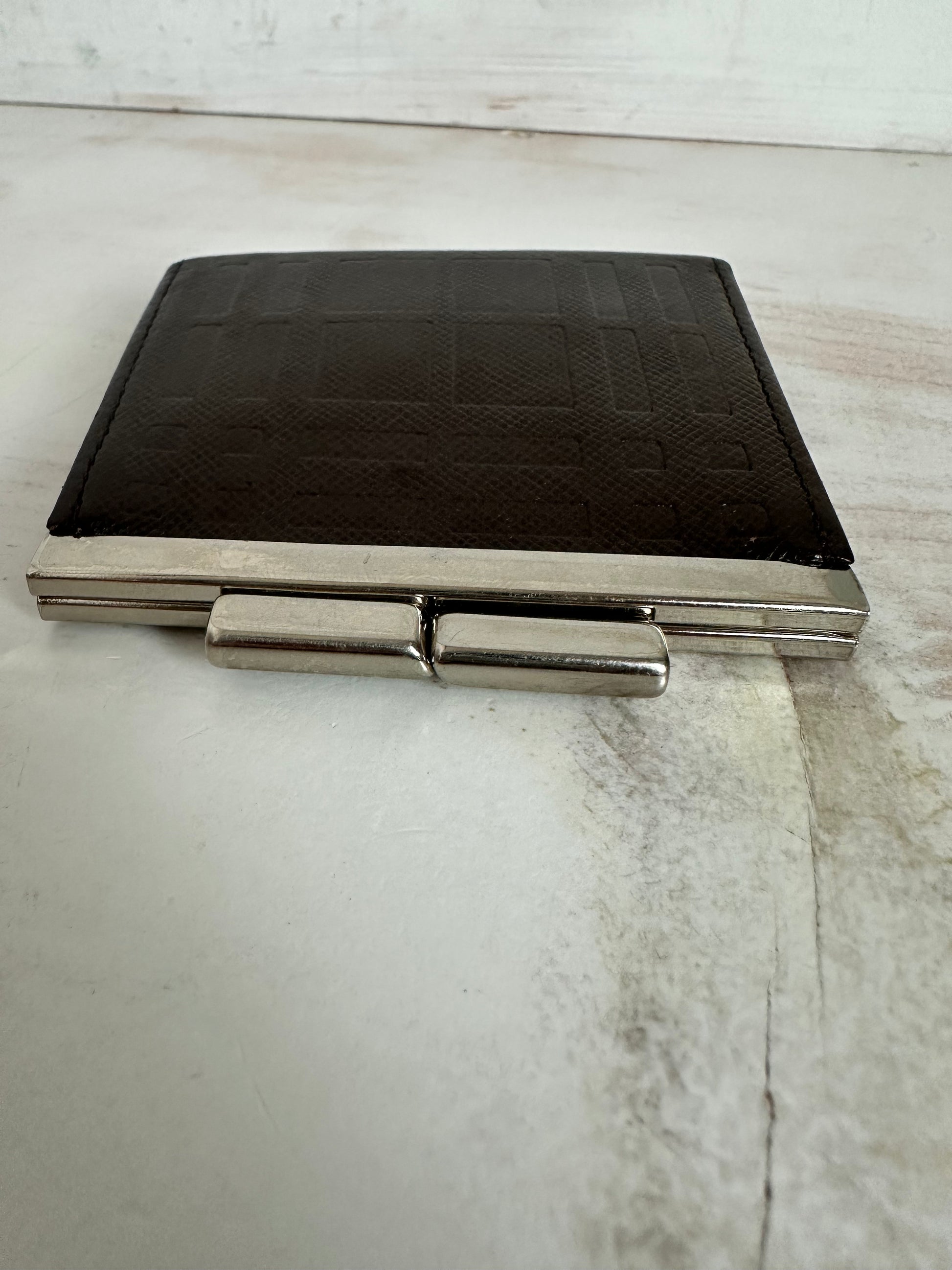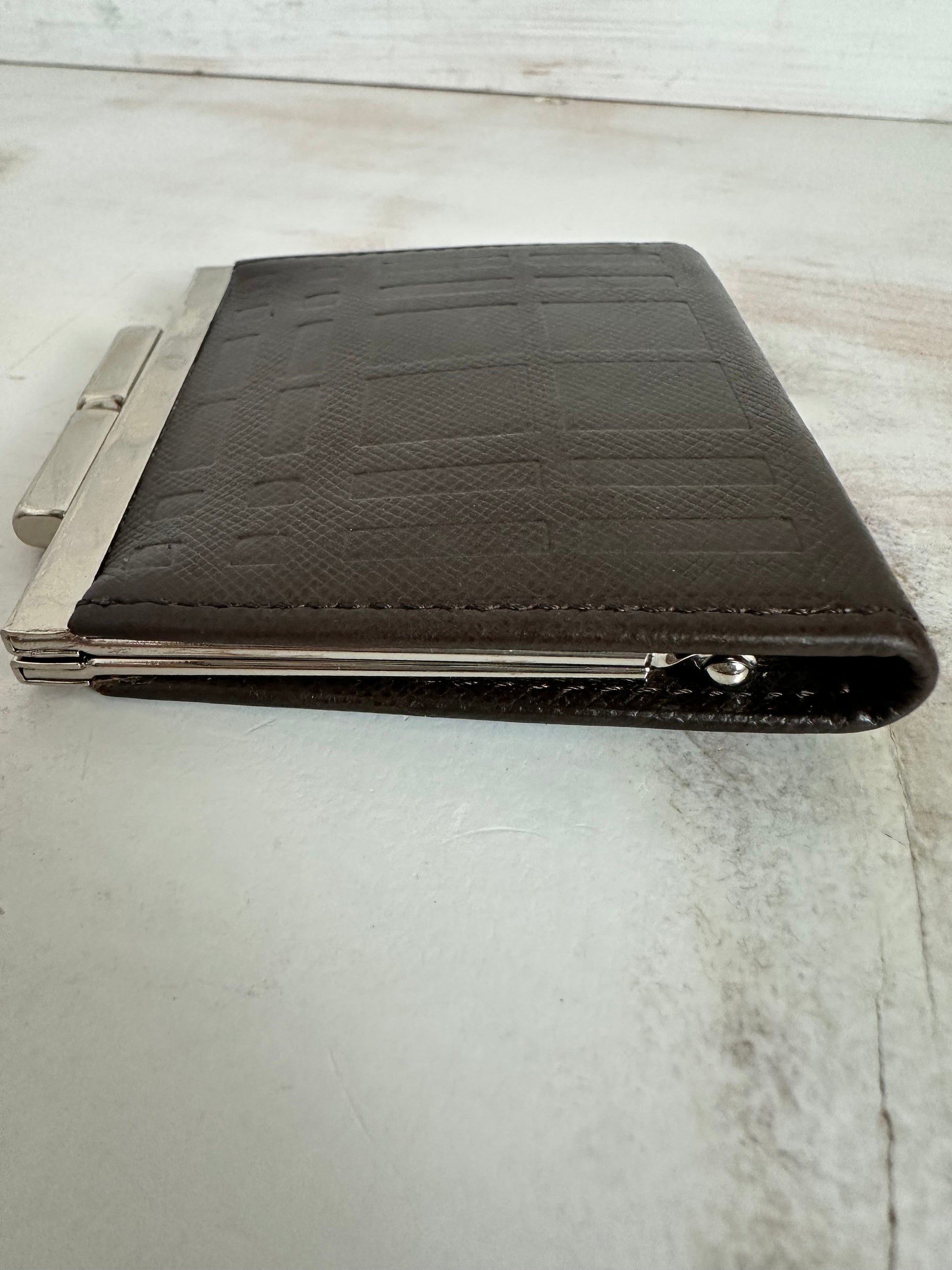 Sophisticated Burberry Nova Check Brown Leather, Snap Closure Coin Pouch. Accented in silver tone hardware. Hardware has some minor scratches. Interior is clean of any coin usage.