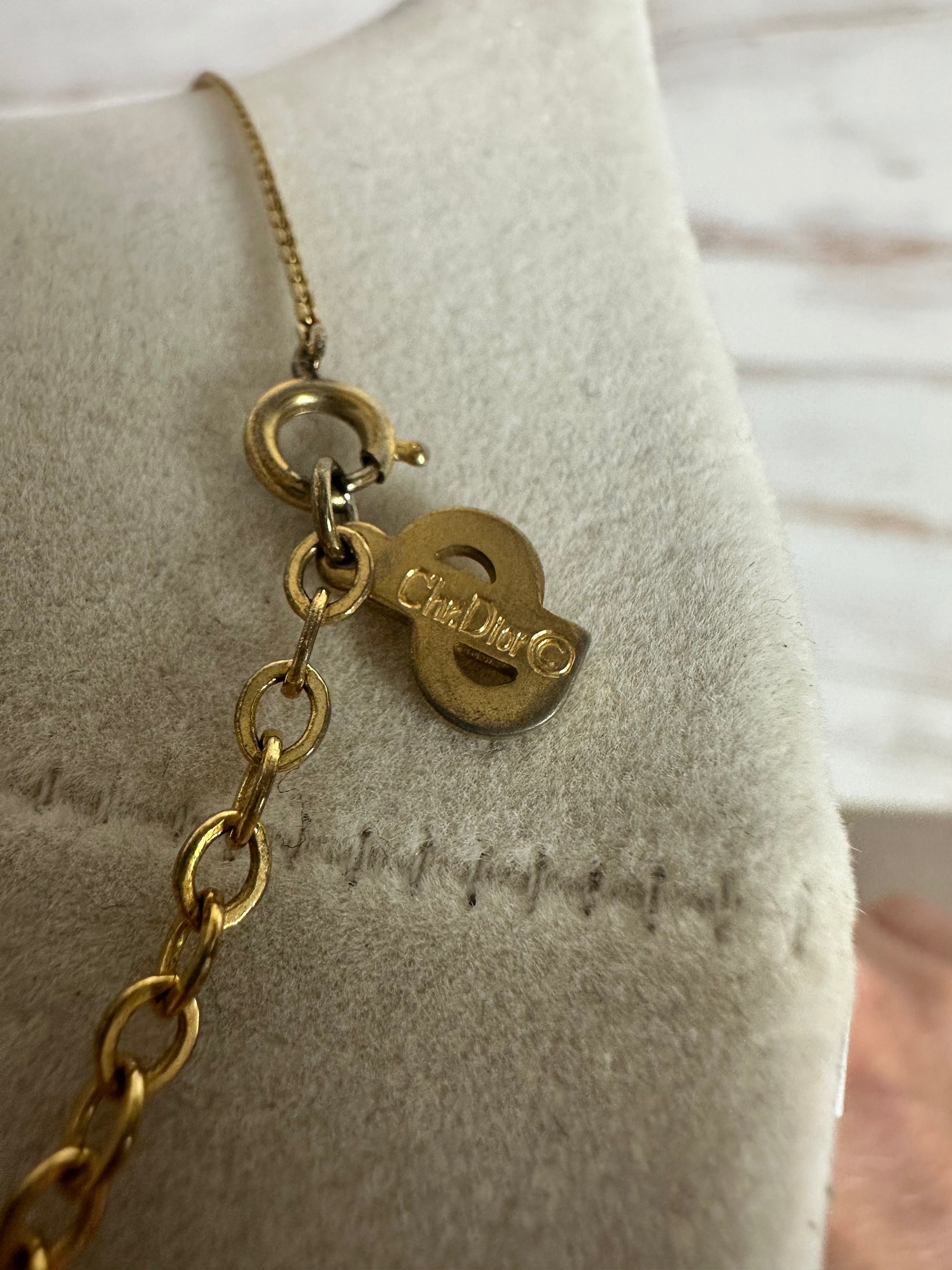 This Christian Dior necklace with a pendant is a sophisticated accessory designed for women. Crafted from metal, it showcases timeless elegance and style. Overall, there are slight scratches, but the necklace remains in great condition. Adjustable spring clasp.