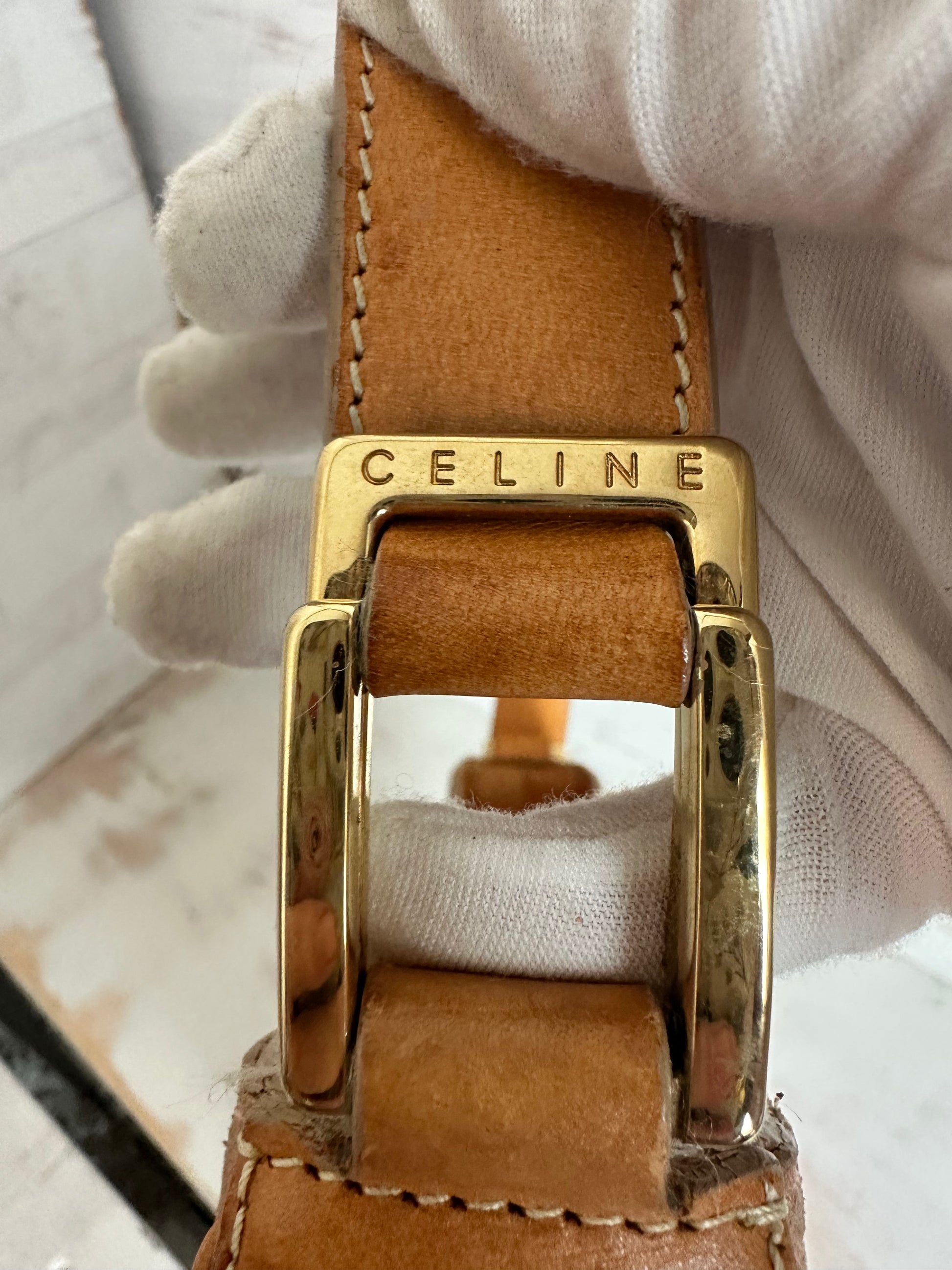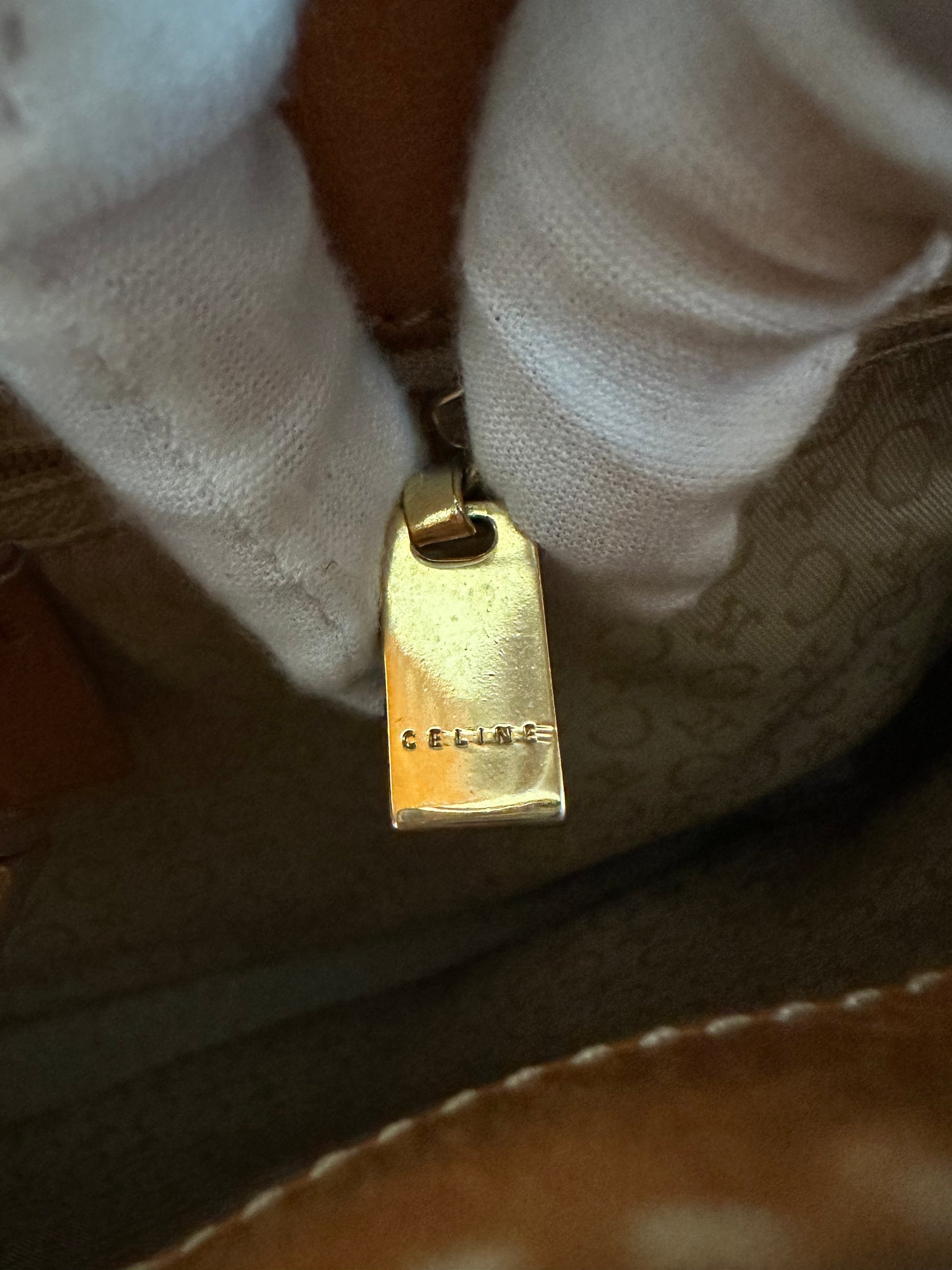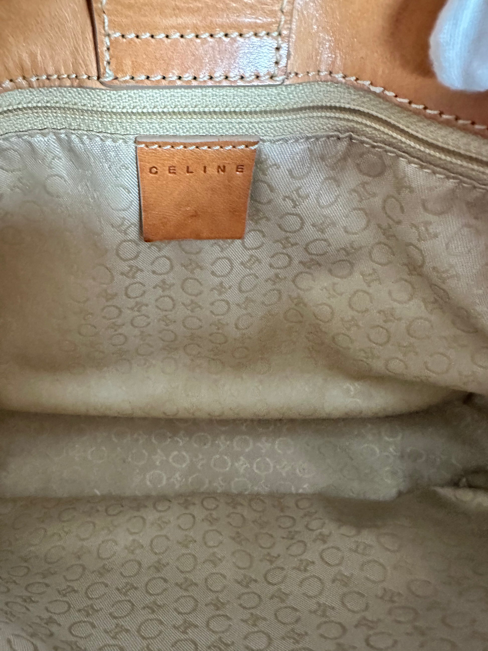 The interior is clean, lined in polyester fabric woven with the Celine monogram and includes a zip pocket--ideal for storing your personal belongings securely. The bag closes with a magnetic clasp, making it both functional and elegant.
