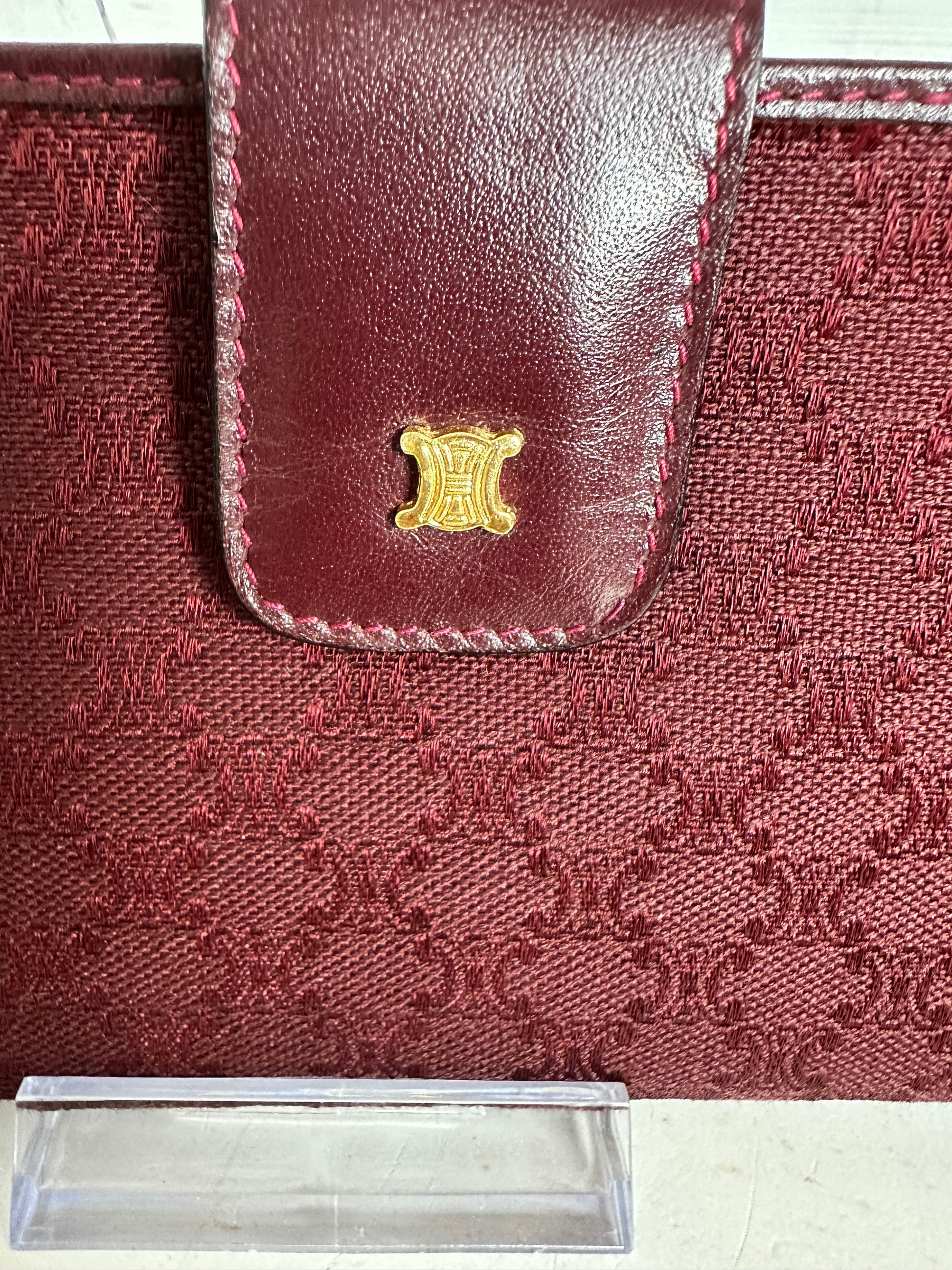 Celine Macadam Burgundy Fabric and Leather Wallet with Kiss Lock