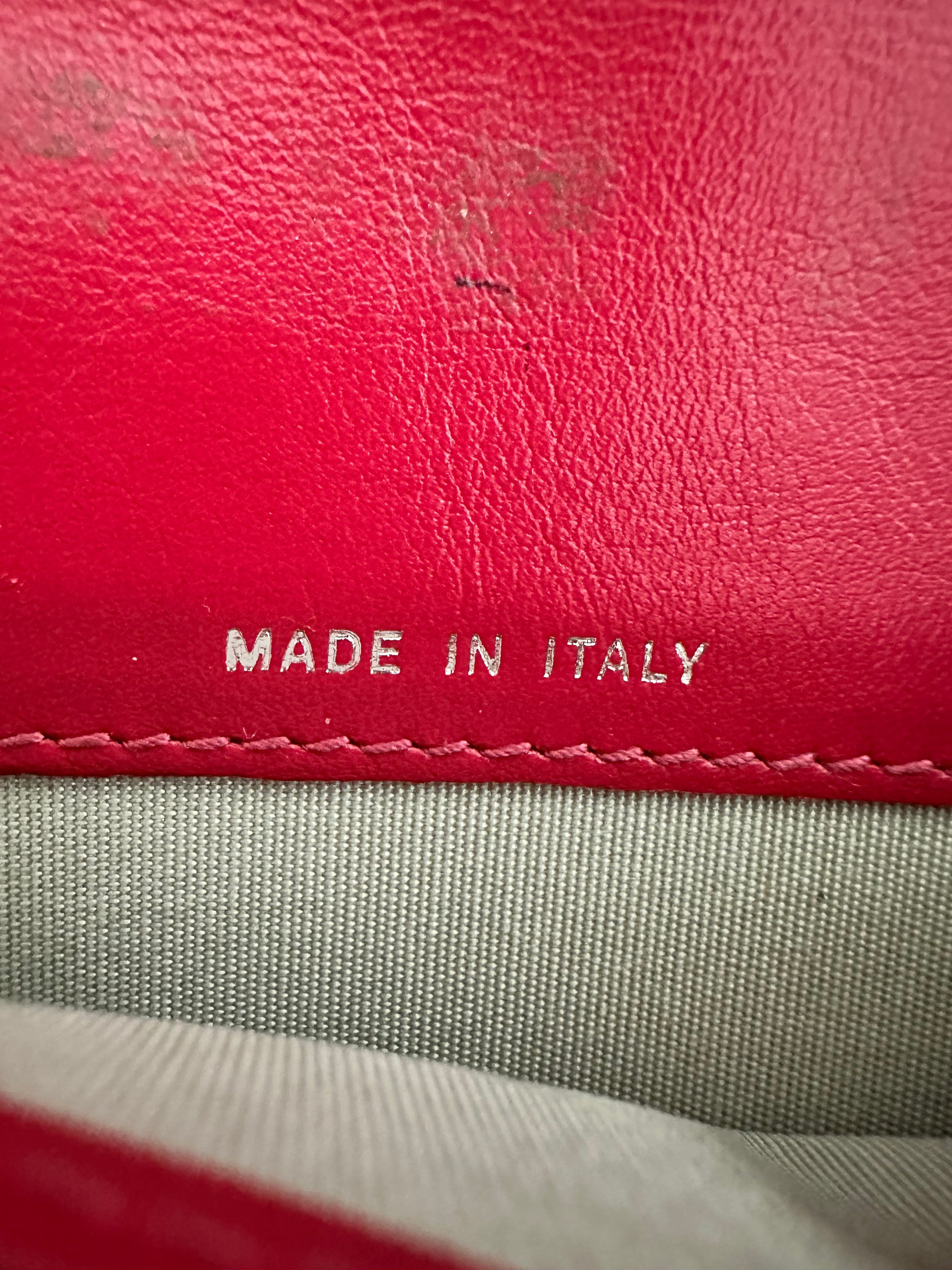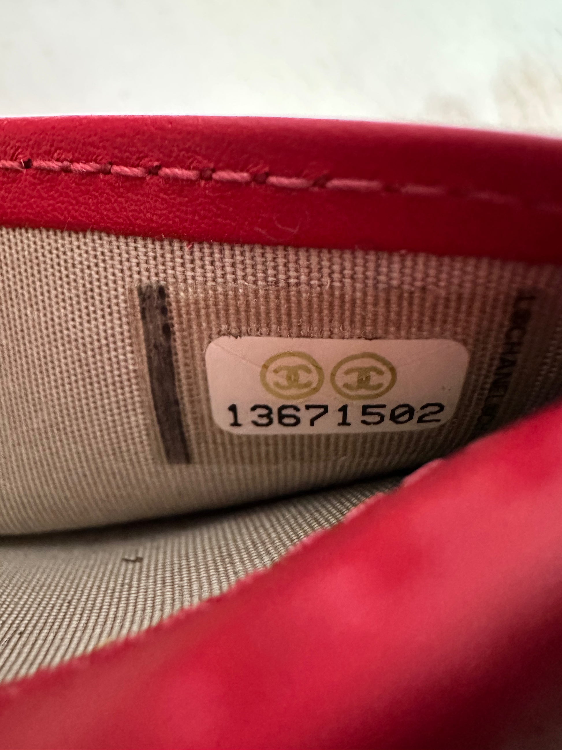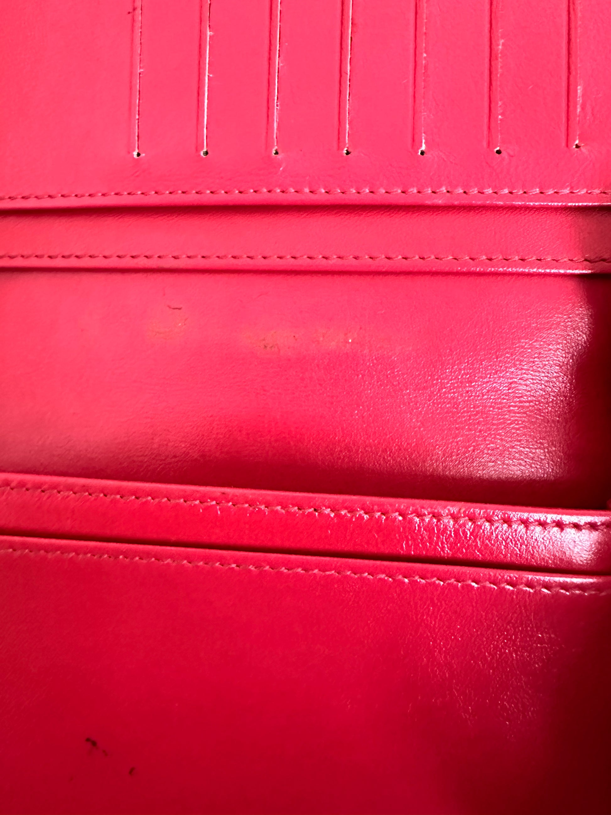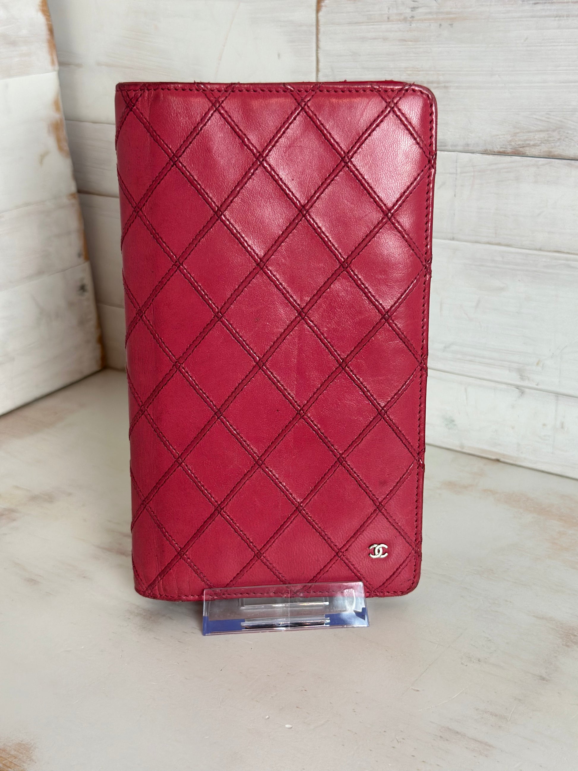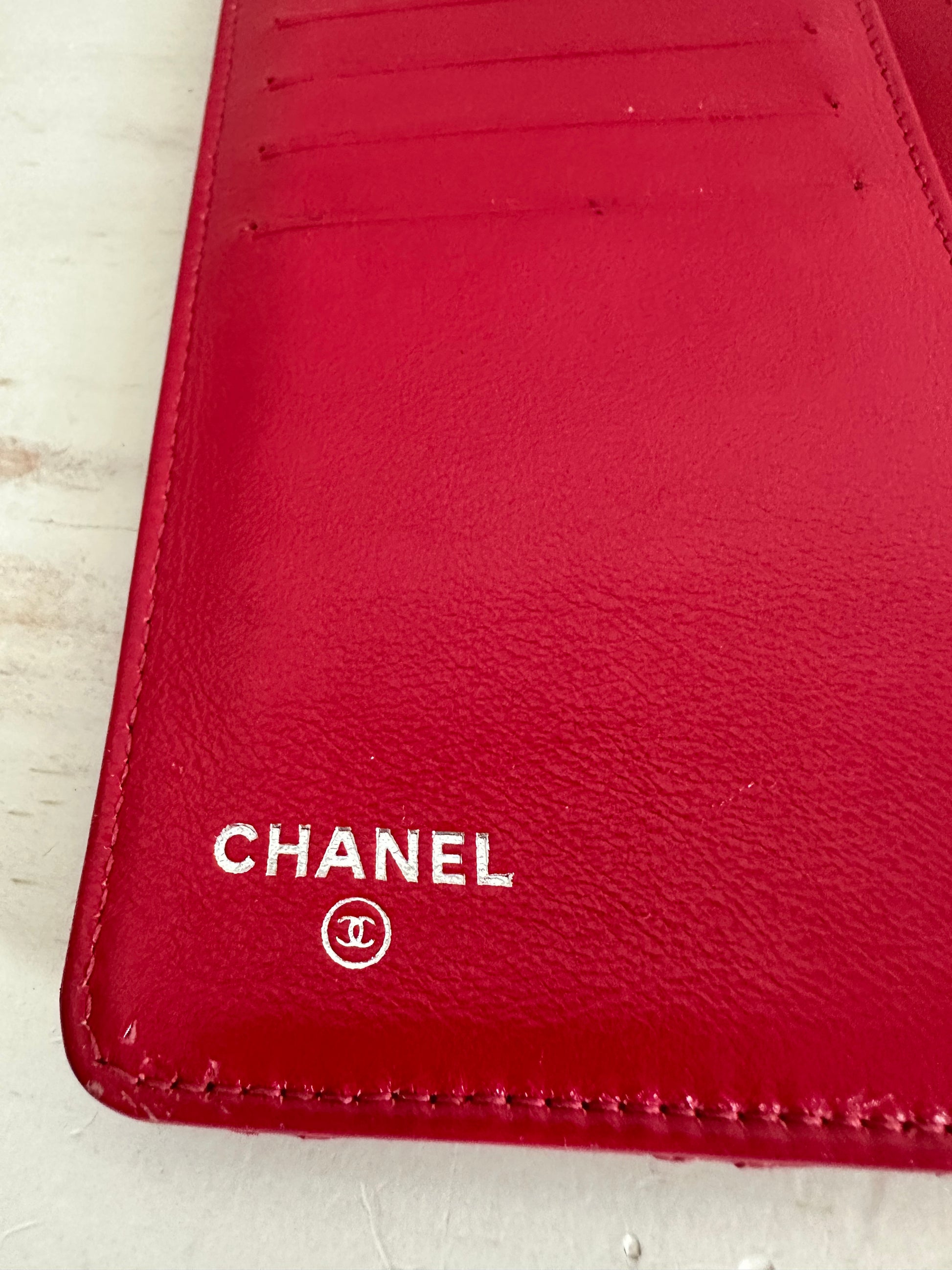 Chanel Bicolor Matelasse Pink Lambskin Leather Long Wallet with the double CC is in good condition. Slight rubbing on the corners and a pen mark and color transfer on the inside. This bubblegum pink with the silver accents is an amazing color combination. Does come with a COA.