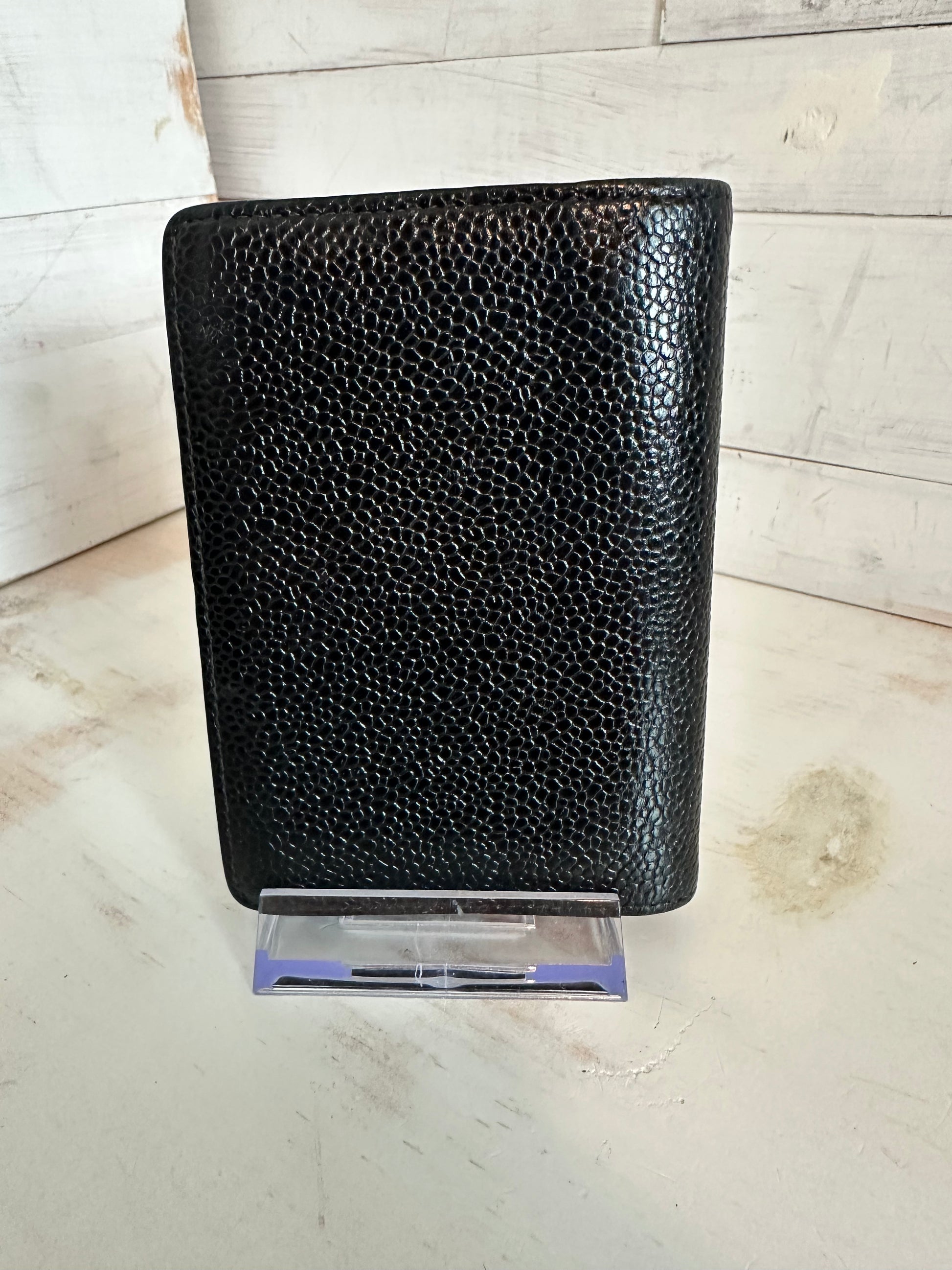 Vintage, CC Embossed Black Caviar Leather Card Holder. Series 6. Featuring 6 card slots and 2 slip pockets.