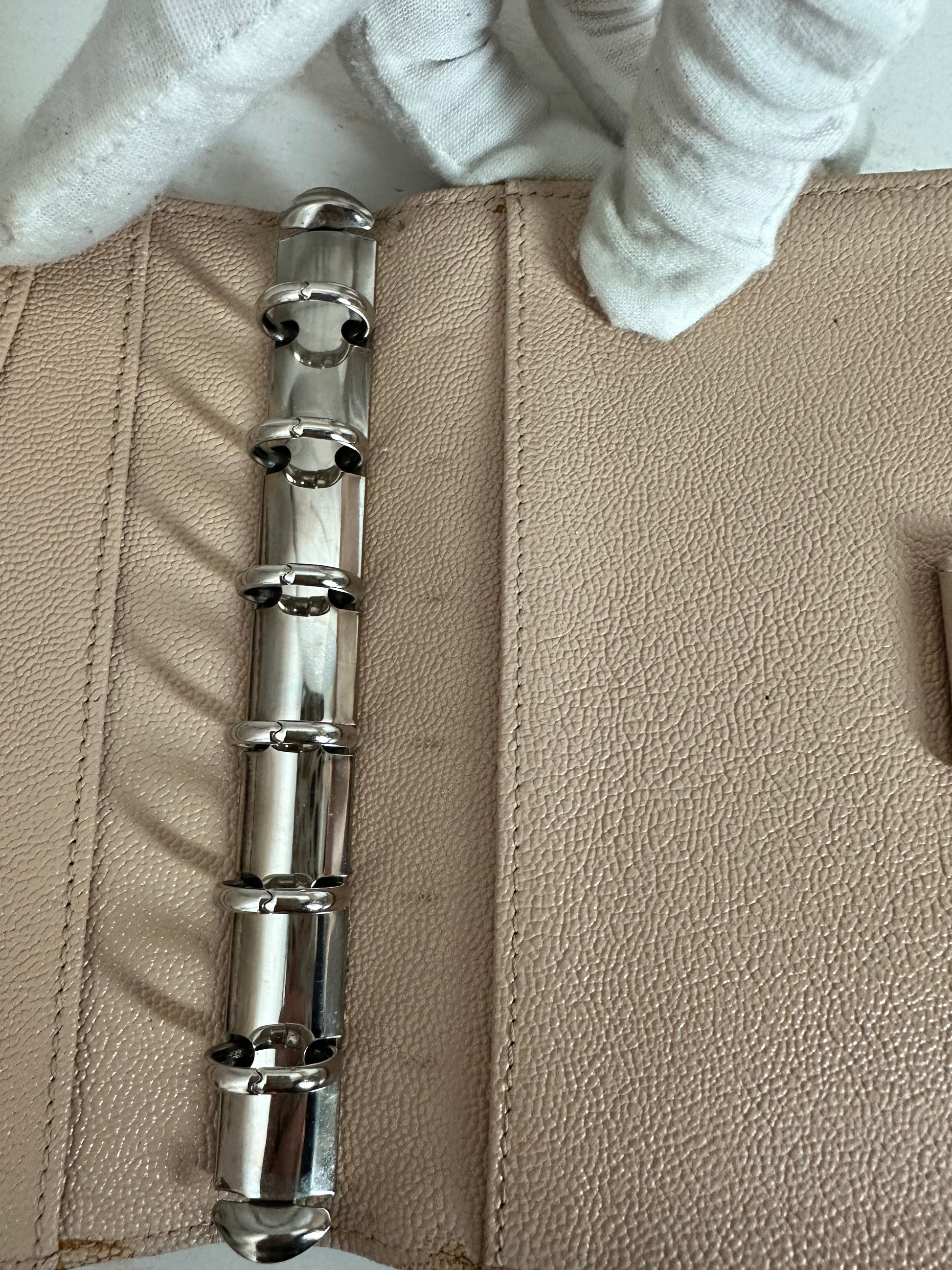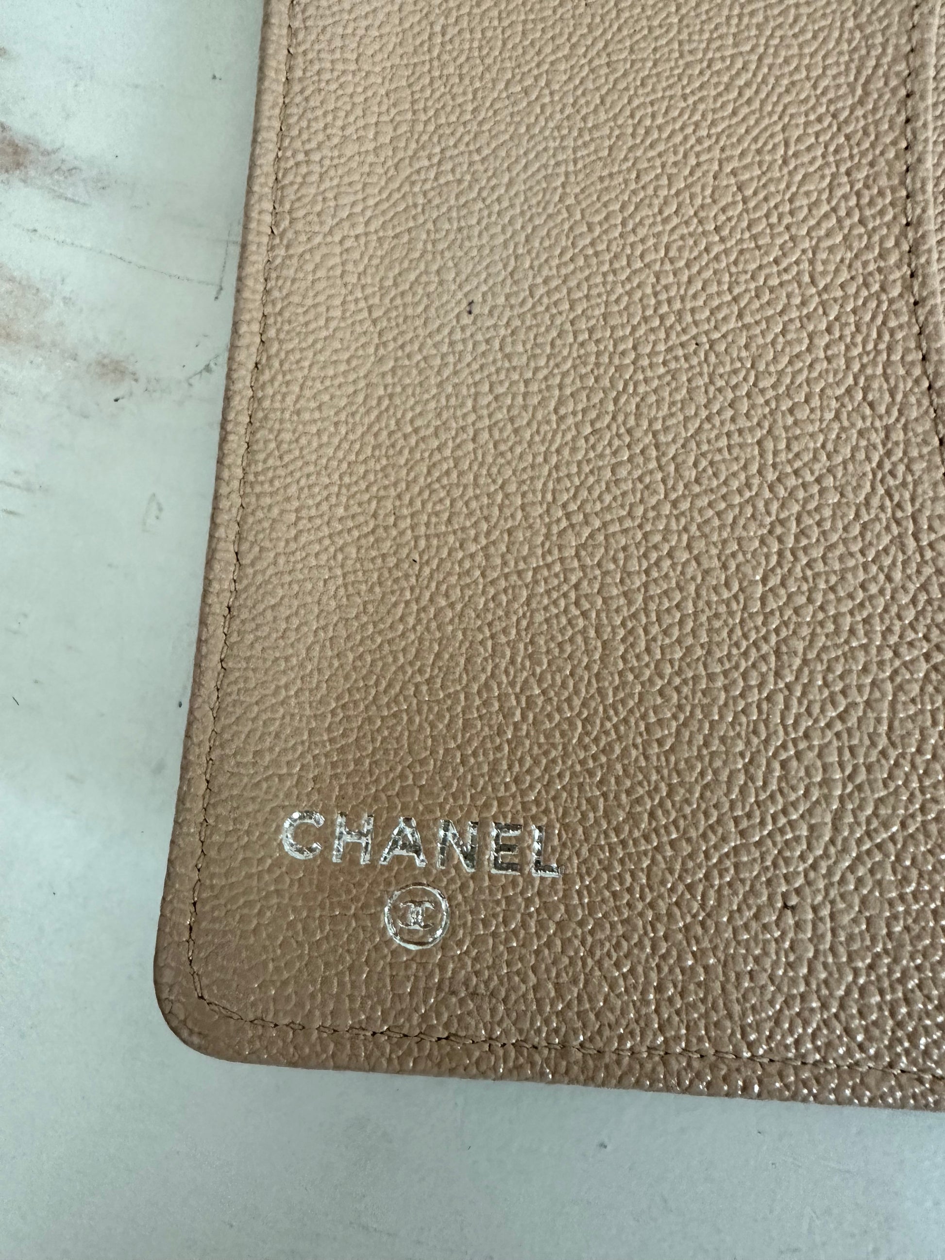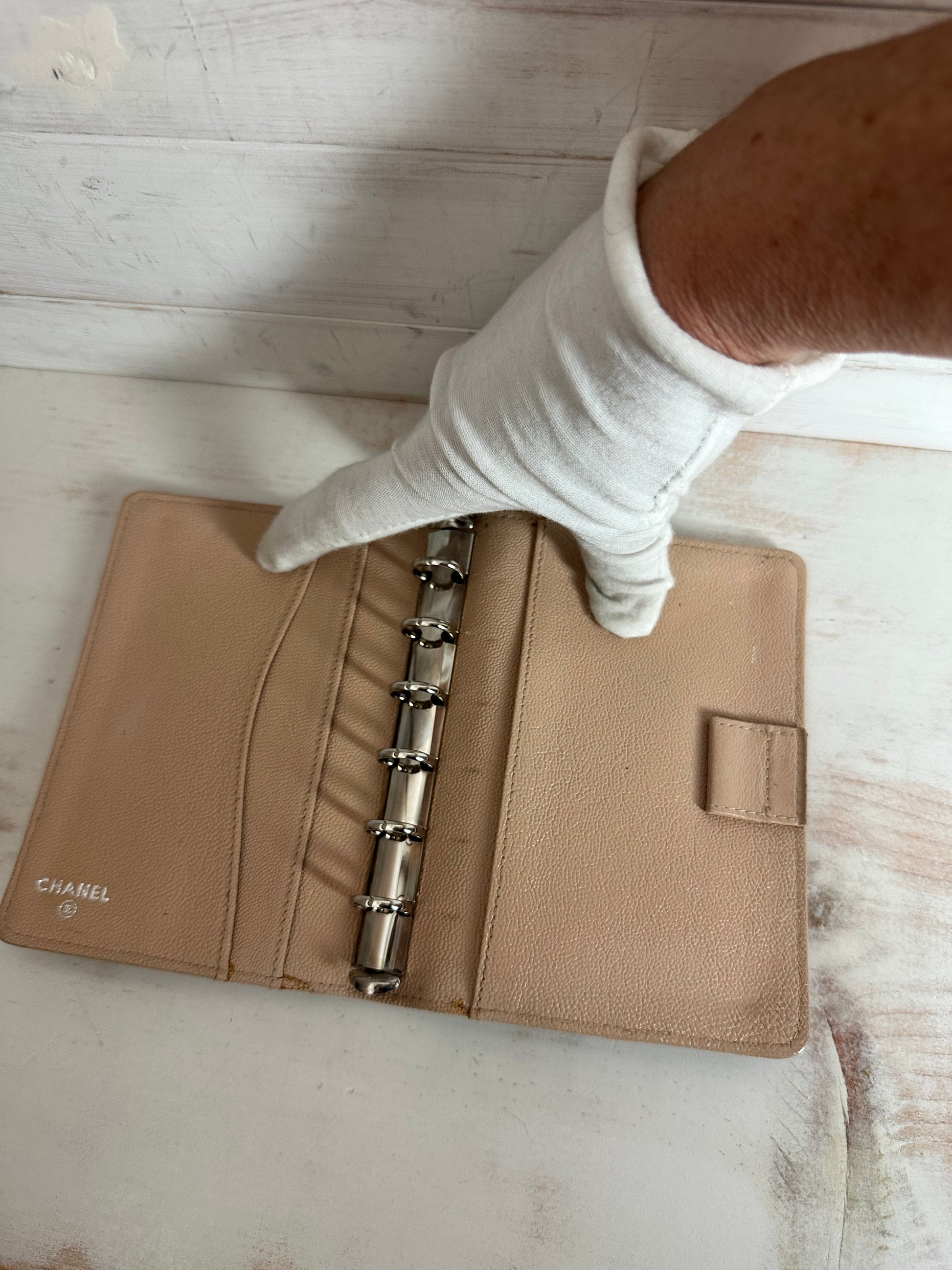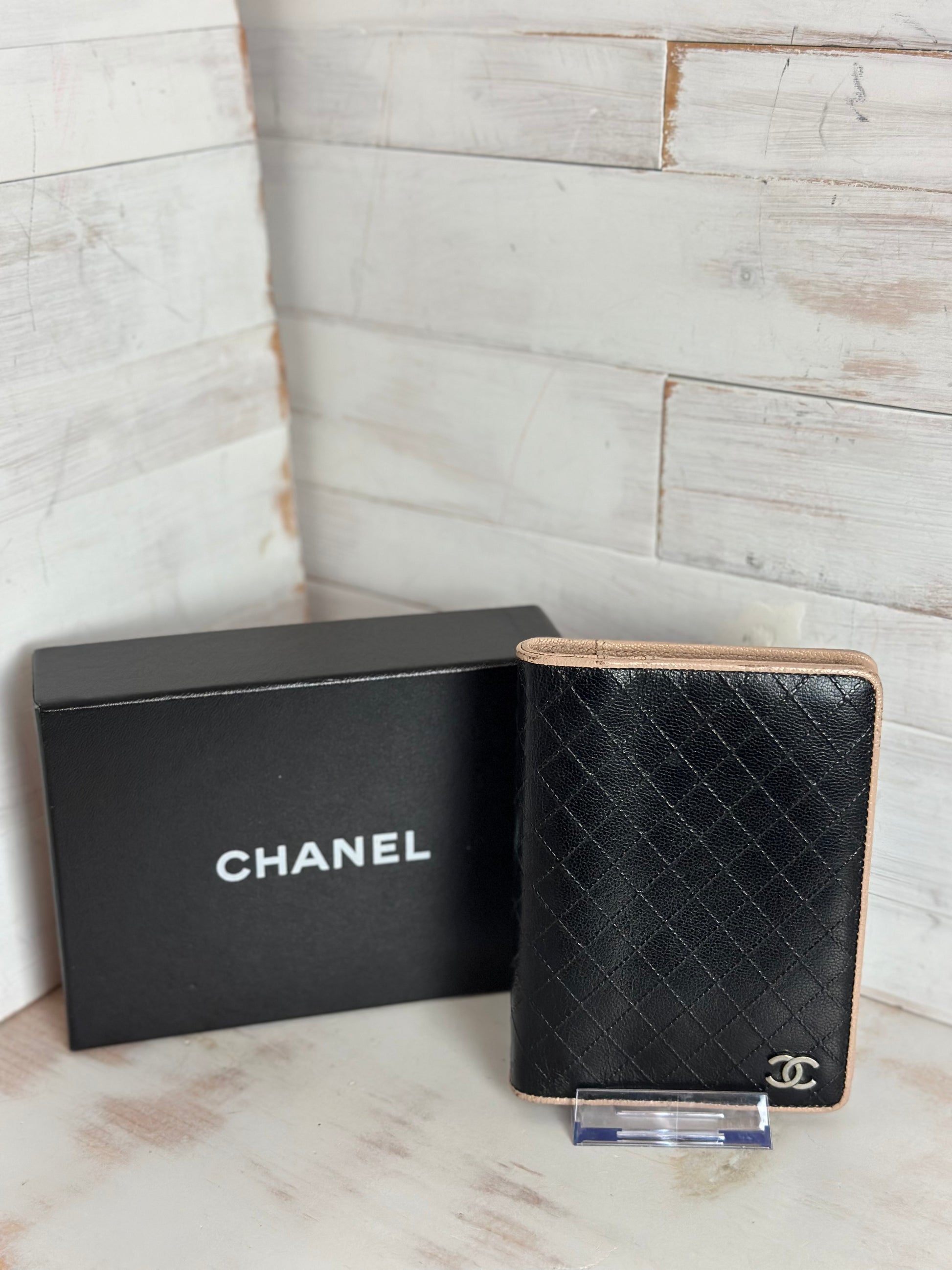 This is a beautiful Chanel Agenda/Notebook that is very versatile. It can be used as a notebook, agenda, day planner, or even a passport cover. It features interior slip pockets and card slots. No separation noted, slight rubbing on edges and interior but overall is in great condition. Hologram is intact. Comes with a COA and box.