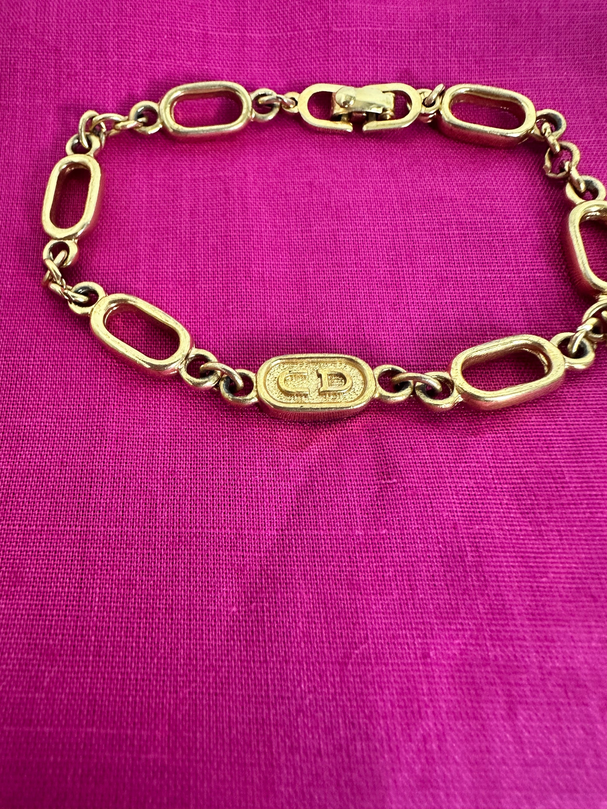 Vintage, gold toned Christian Dior, classic CD oval logo chain bracelet. Very light scratches only to clasp hardware.
