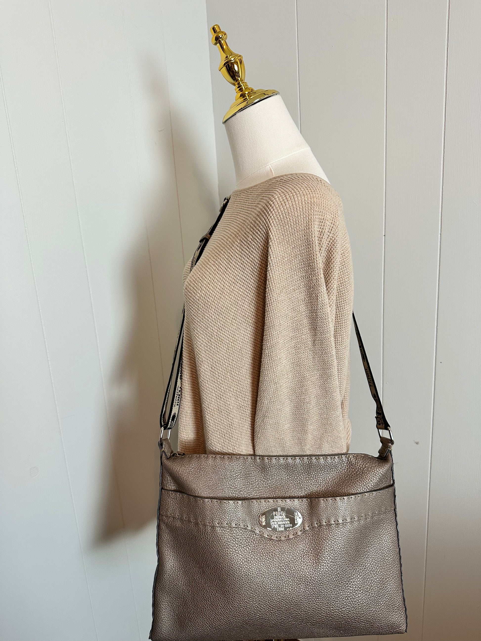 Fendi Romano Selleria Messenger Gray Shimmer Shoulder/Crossbody