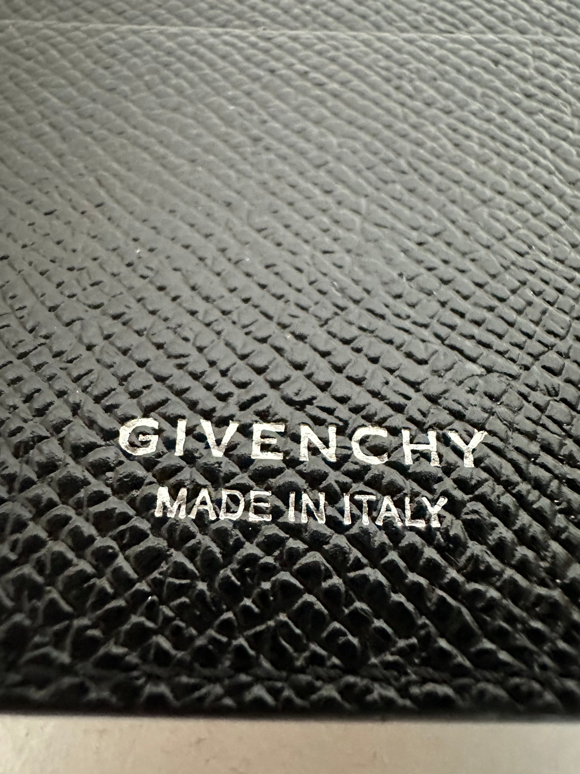 The Givenchy Bifold Money Clip wallet is a stylish and practical accessory for men. This authentic black card holder case features the iconic Givenchy brand logo and is perfect for storing cards and cash in a sleek and compact design. This wallet combines functionality with luxury, making it a must-have for any fashion-forward man looking to keep his essentials organized and secure.