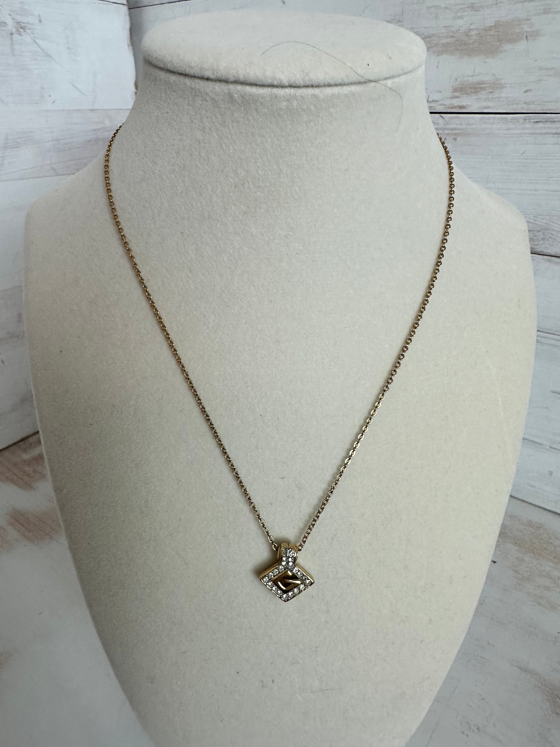 Classic Givenchy "G" gold tone pendant surrounded by rhinestones. Perfect to wear alone or layering with your favorite necklace.