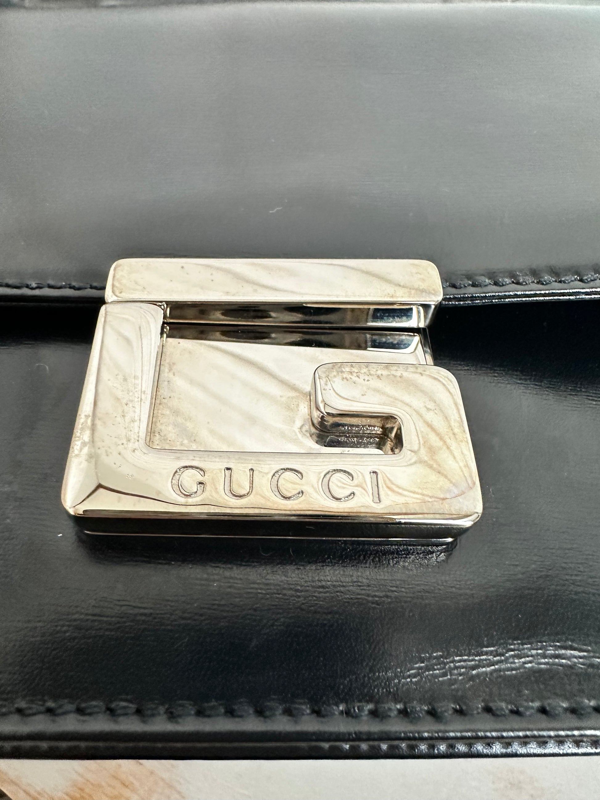 Gucci RARE Tom Ford Era Gucci G Lock Black Leather Handbag