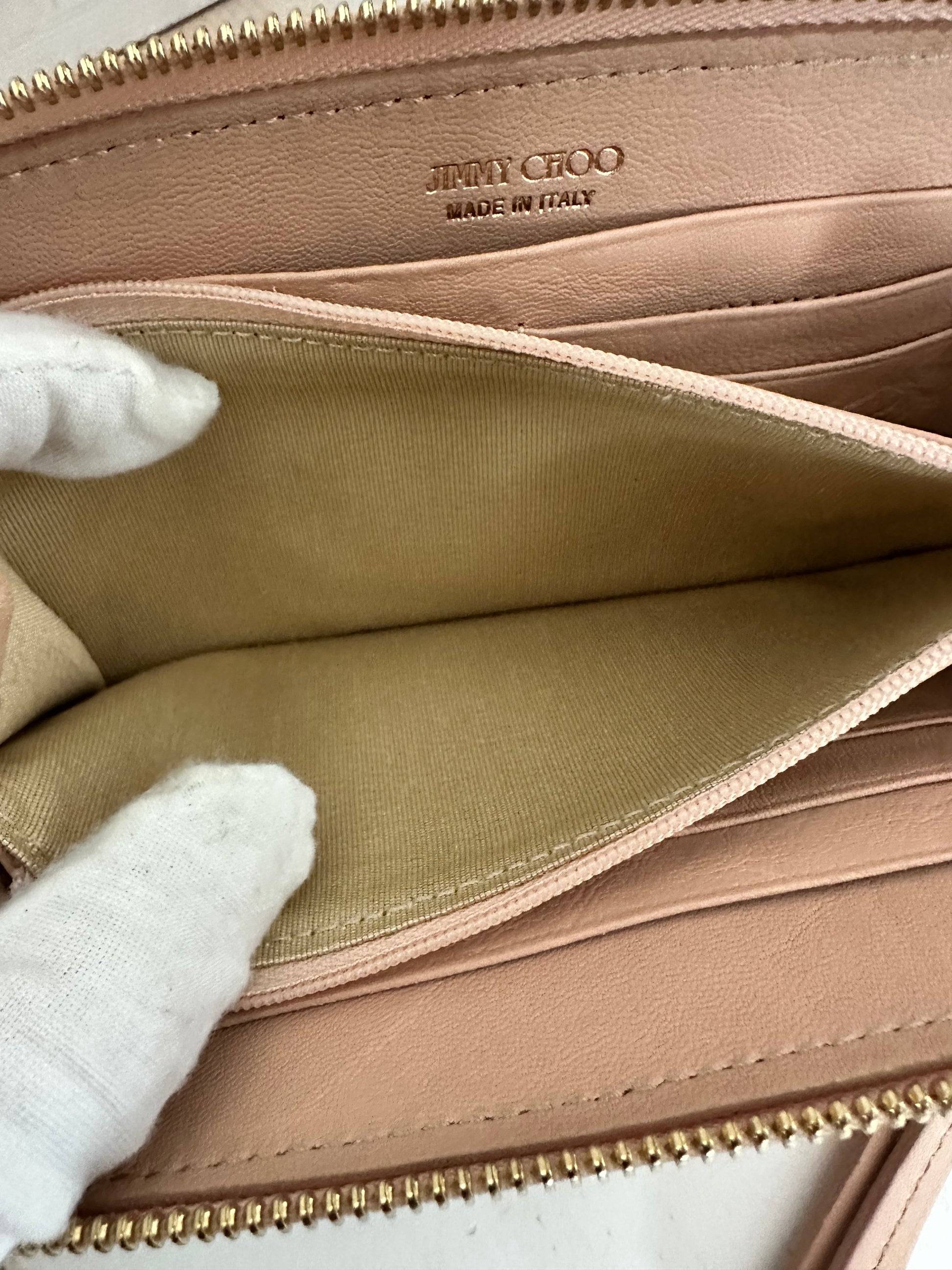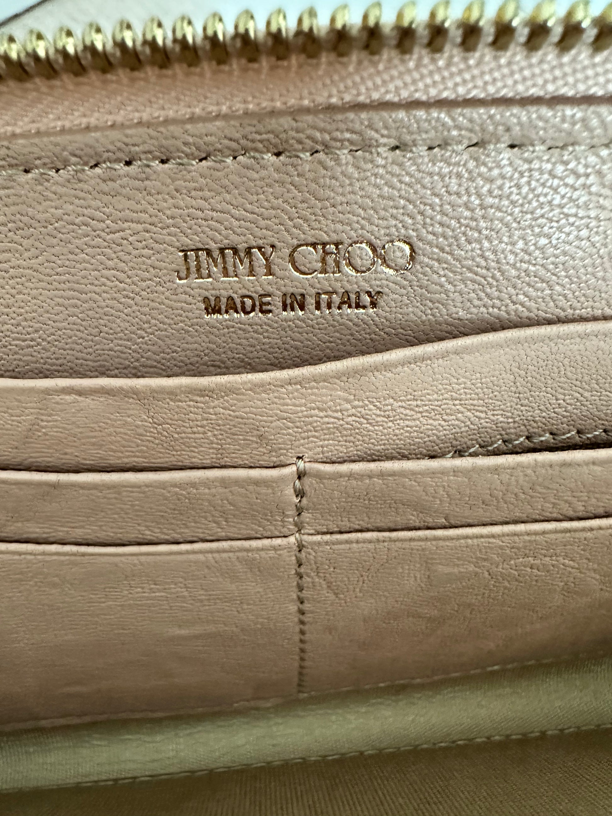 Jimmy Choo Flower Zip Around Wallet in Powder Biker Leather