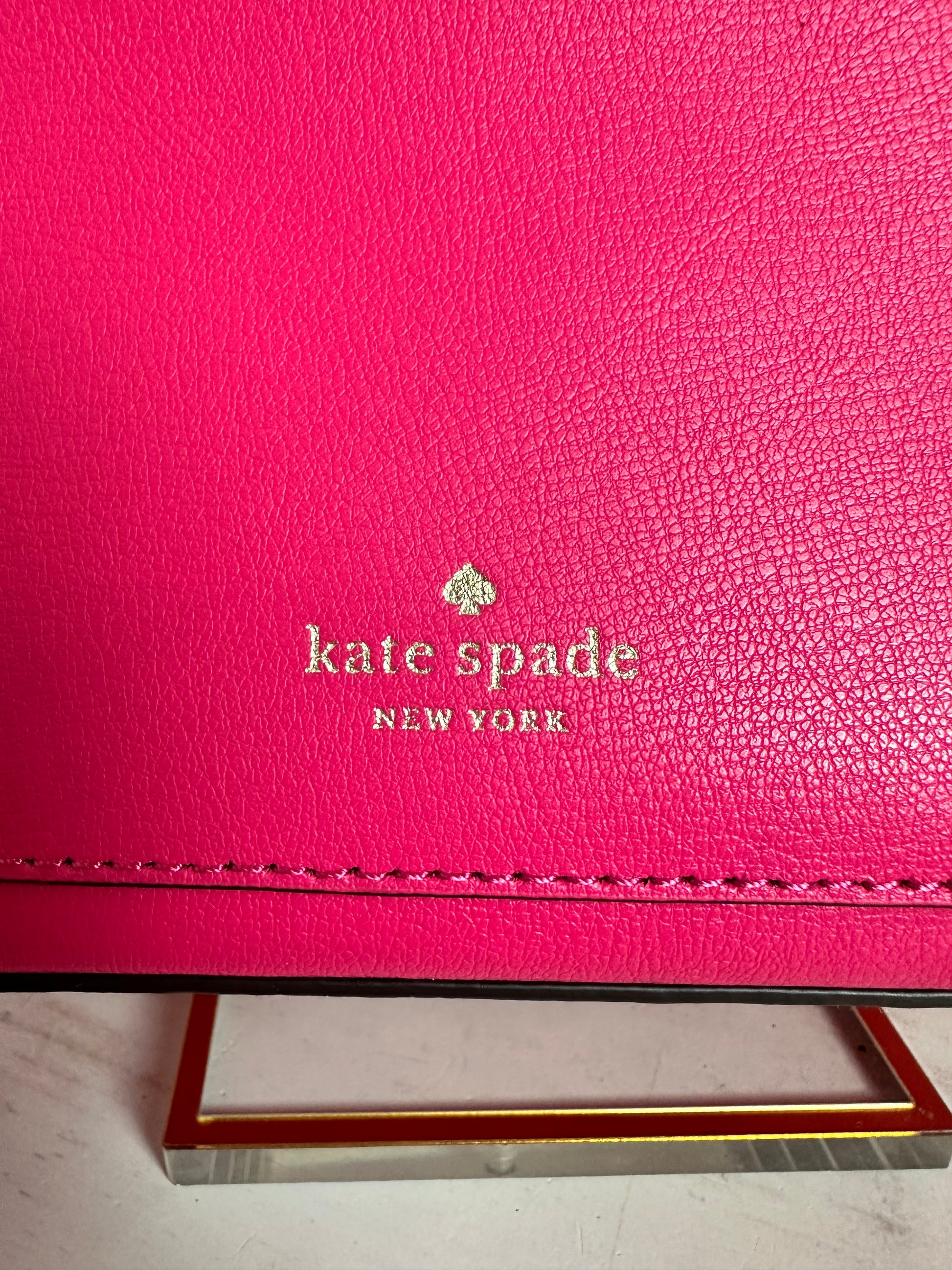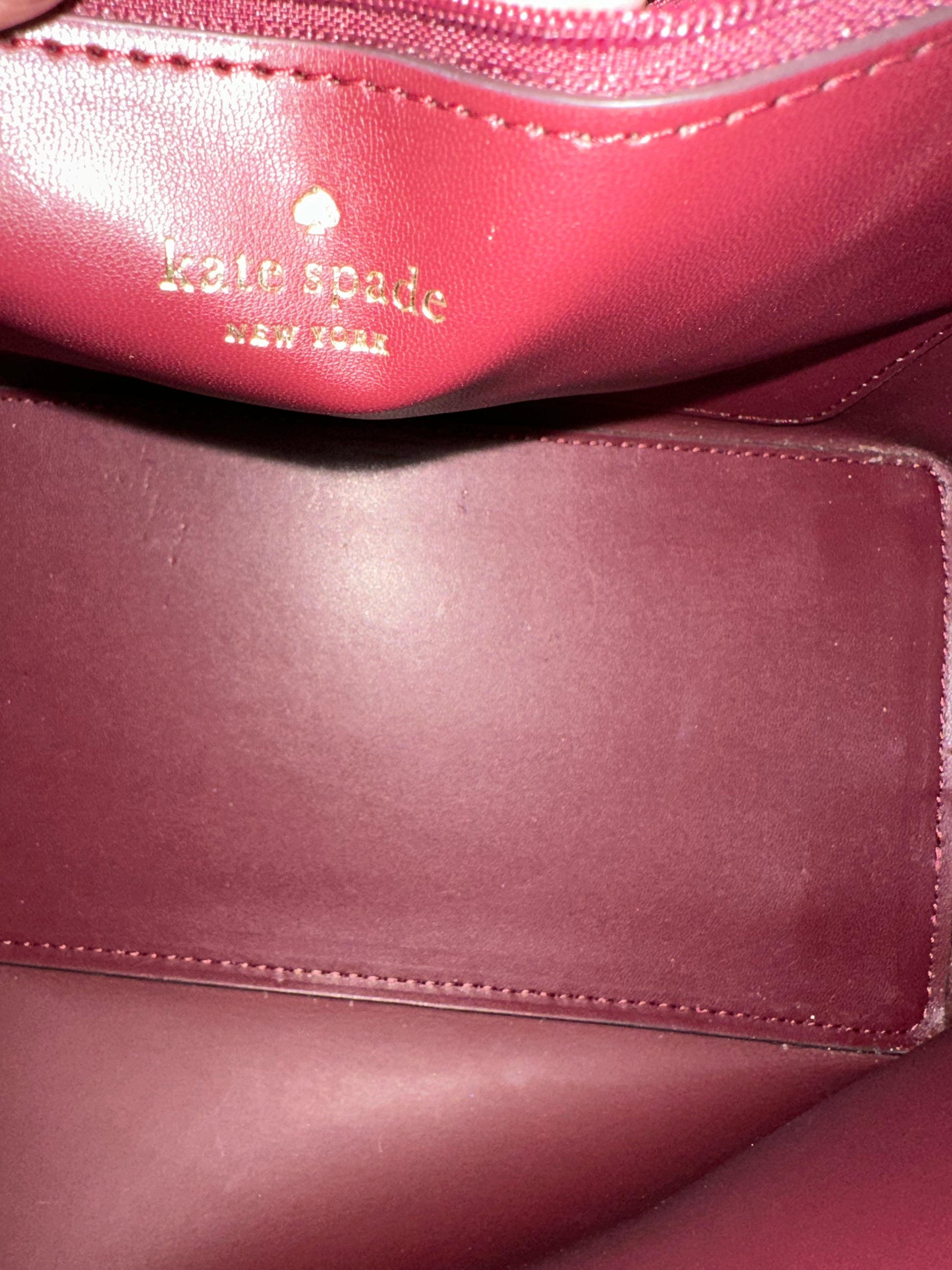 The Kate Spade New York Adele Refined Grain Leather Large Tote is a stylish and spacious handbag. Made from high quality leather with a solid hot pink exterior and a merlot color interior. Exterior has a drop pocket in the front of the bag. Gold tone zipper closure on the top. Interior has a zippered pocket and plenty of room for all your essentials. This is both a practical and stylish choice for everyday.