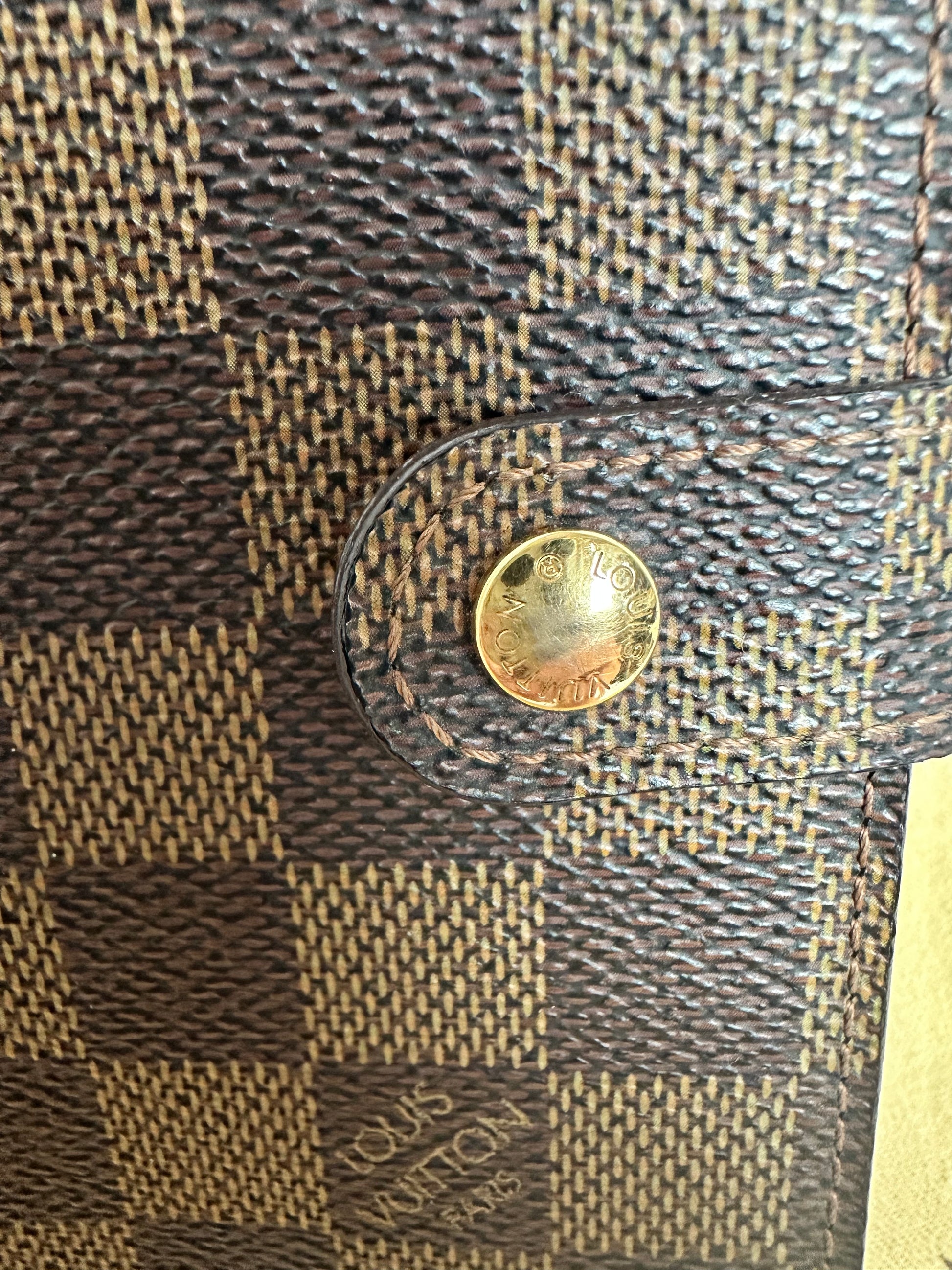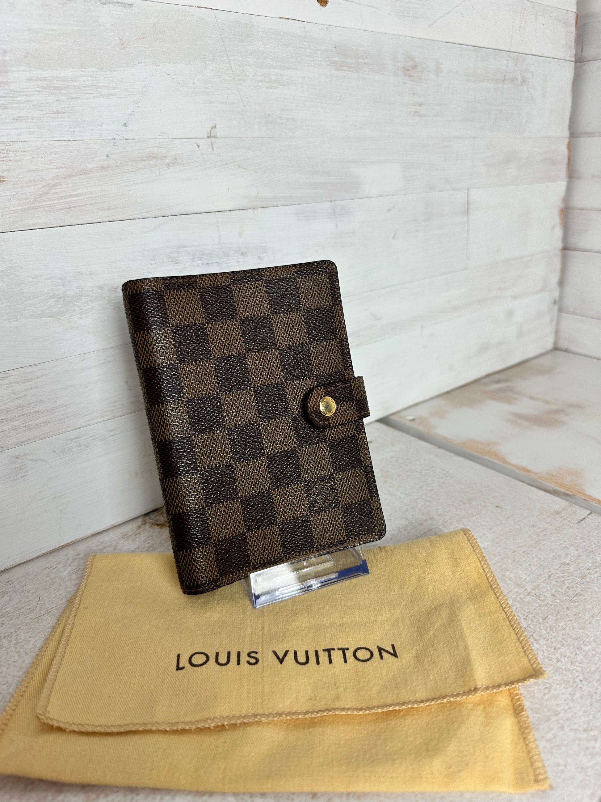 This Agenda cover features the iconic Damier Ebene canvas, a checkered pattern in shades of brown. Bonus is it has the insert and LV stickers. Use as a notepad or perfect for use as a passport holder. 3 card slots available makes this perfect for the traveler. This is in like new condition. Circa 2009 #CA1019. Dust cover is included.