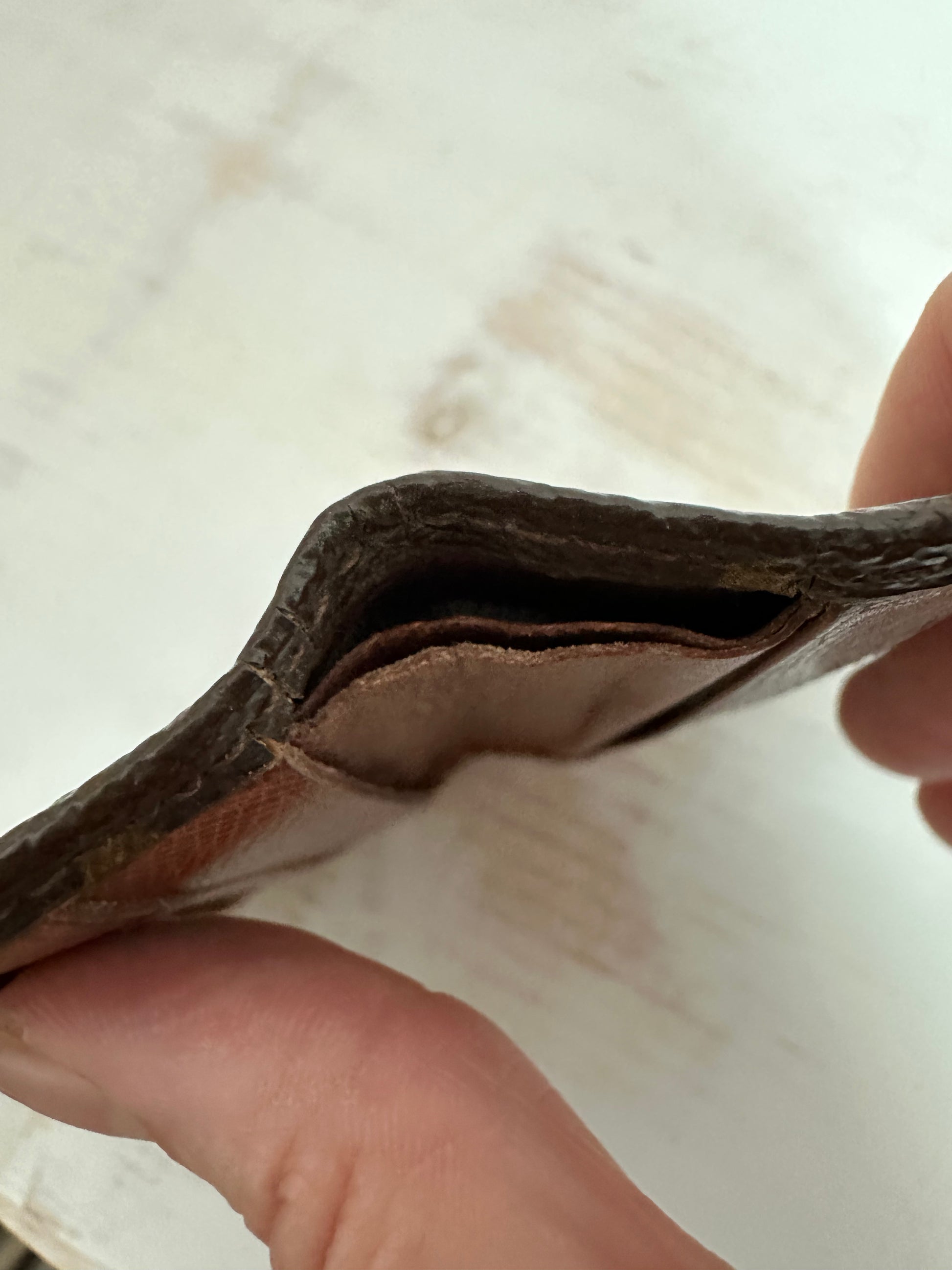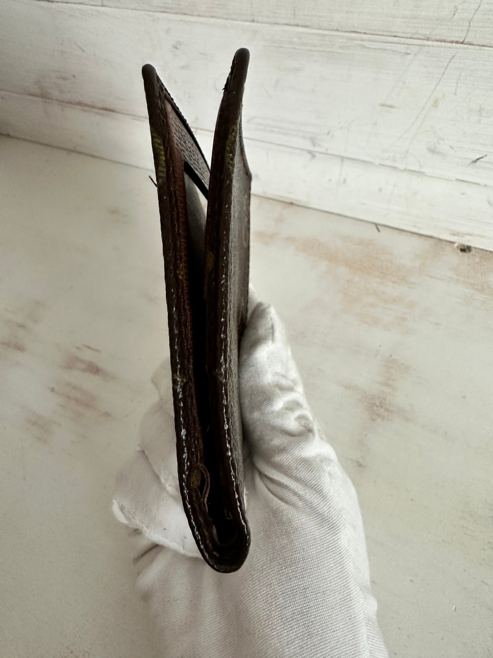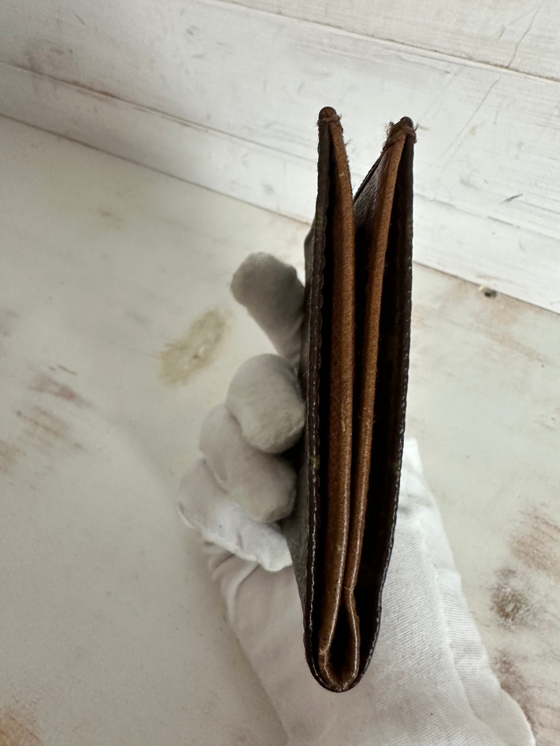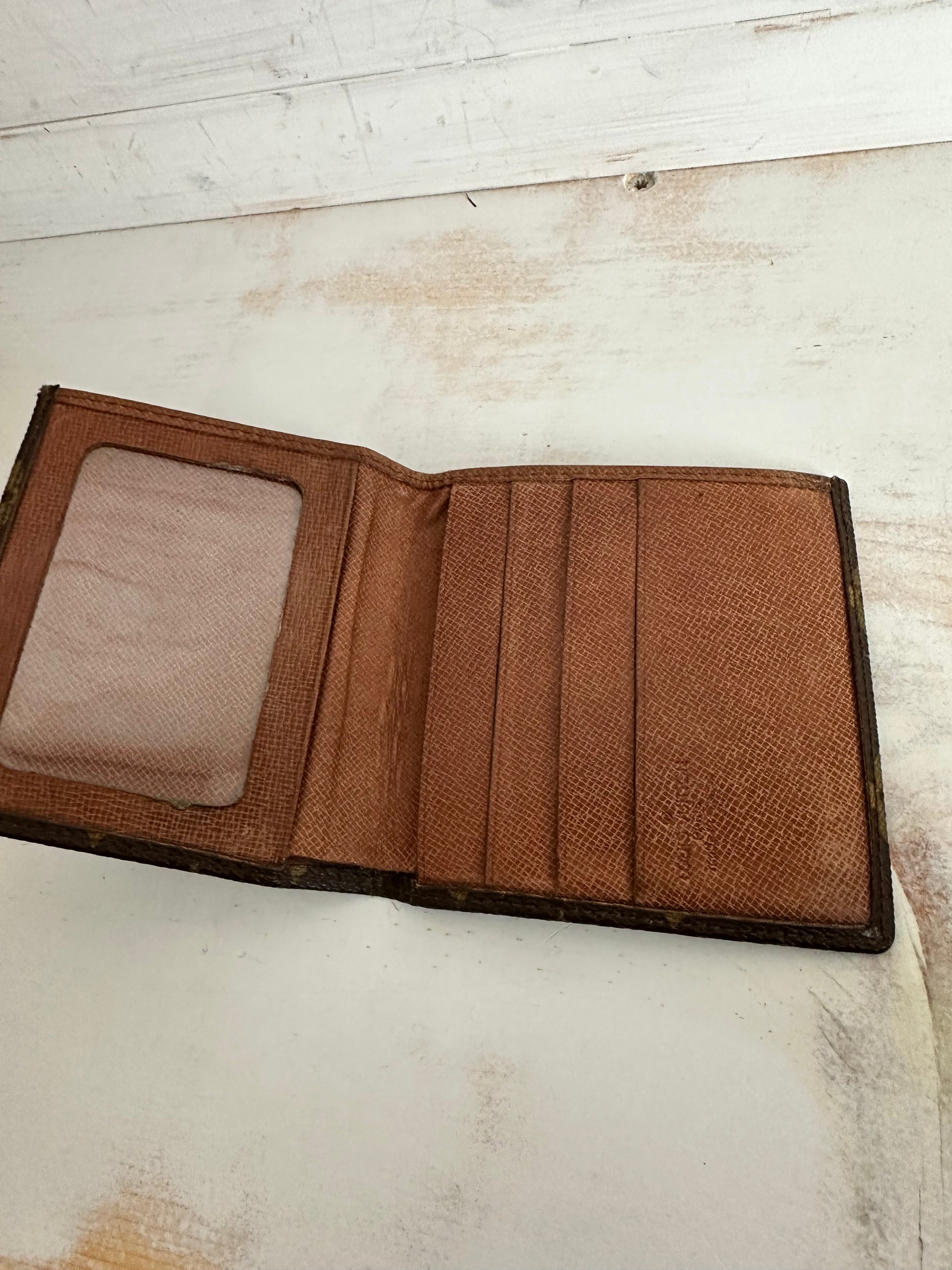 VINTAGE circa 1985 Monogram Porte-Billet Bleu Compact Wallet. 4 card slots and place for ID. Please see all pictures for condition. No cracking or peeling noted. Creasing noted on interior center. Minor scuffs noted on plastic of ID holder. Overall, excellent contion for a piece that is 40 years old. Comes with a COA.