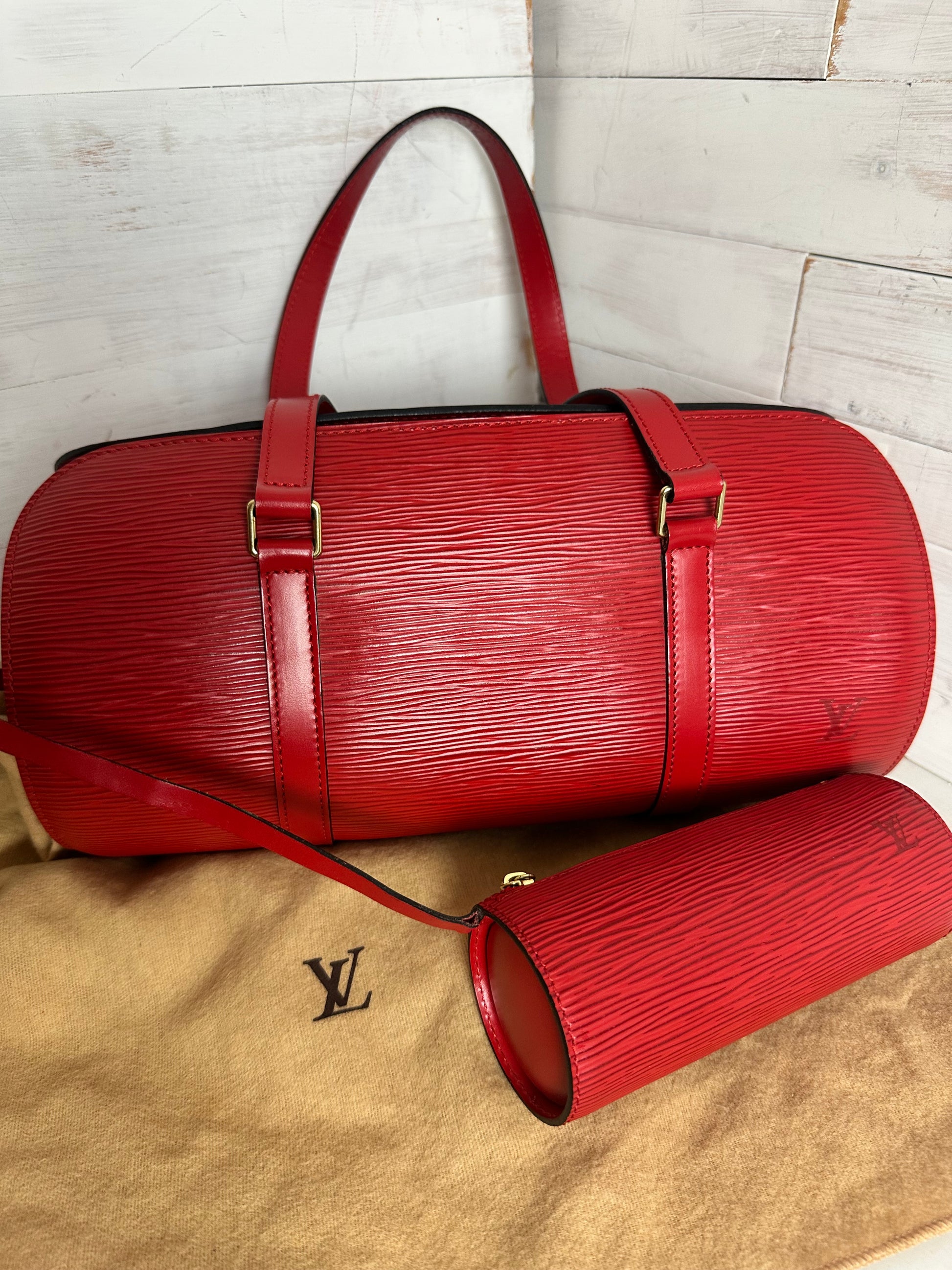 Louis Vuitton Vintage 1997 Red Epi Leather Soufflot with mini