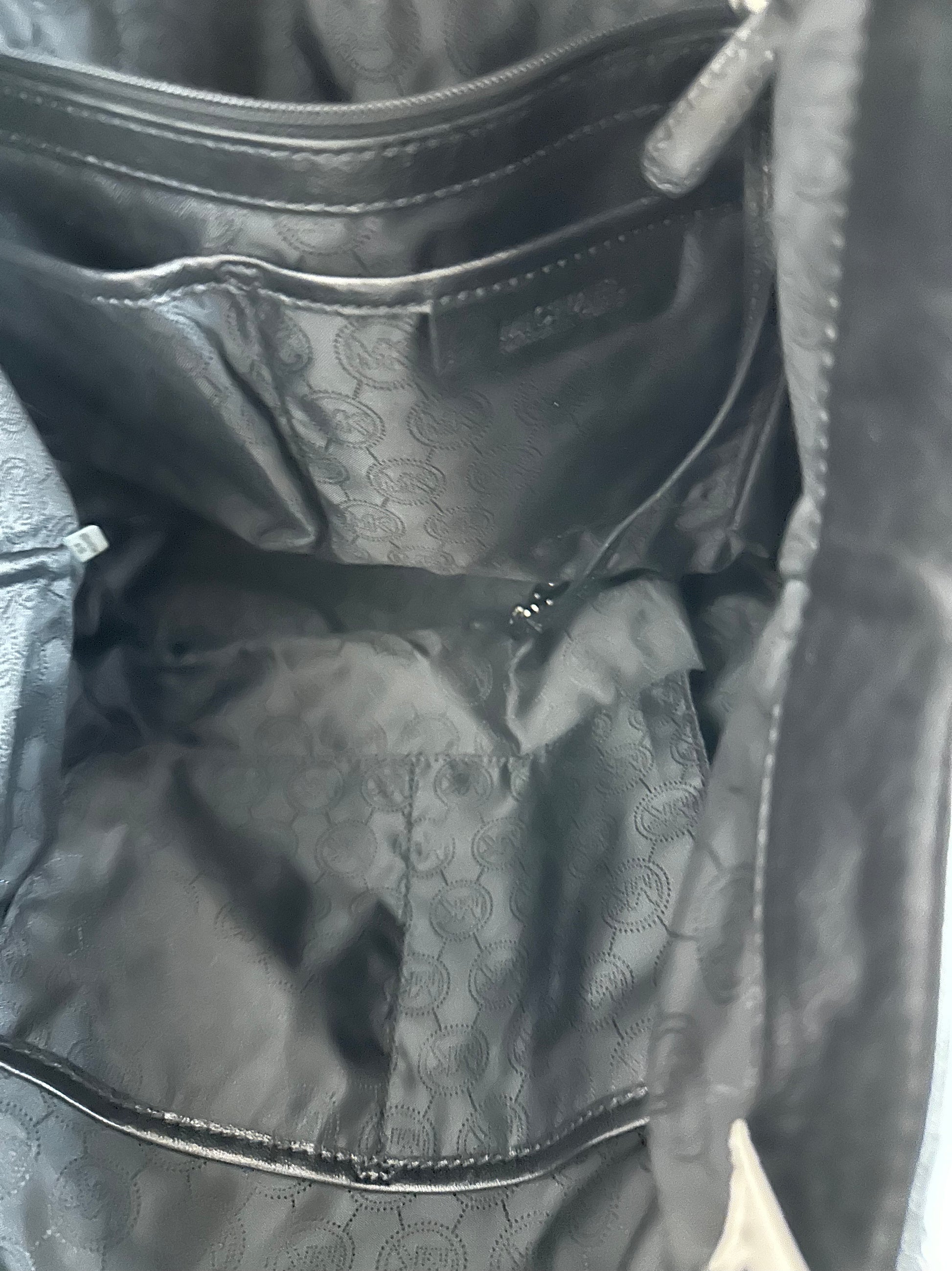 This is 100% Authentic Michael Kors. Gorgeous bag. Not used (tags not attached) and it’s been stored in its dust bag. Black and Optic White with silver tone accents. Two interior pouches with two exterior side pockets. Super Soft beautiful leather. Clean interior.