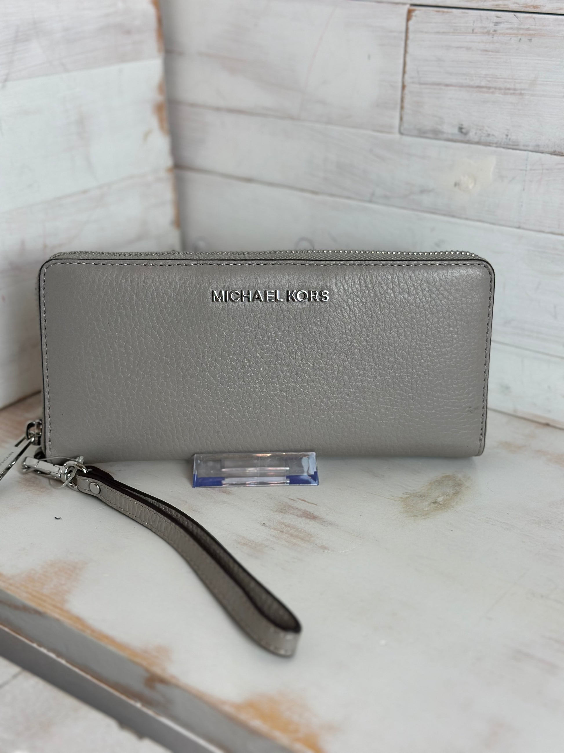 Michael Kors Pebbled Leather Continental Wristlet in Gray