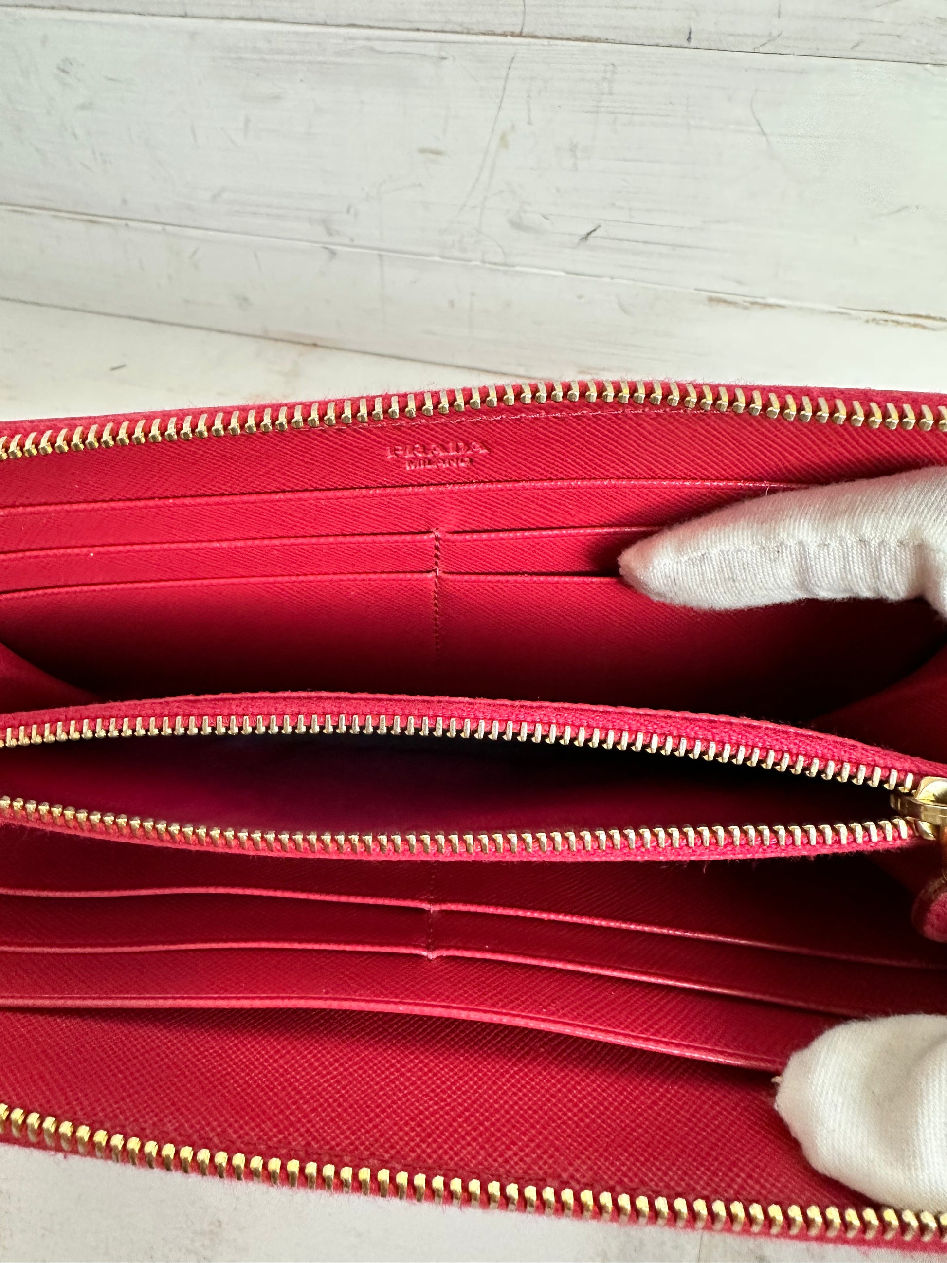 AUTHENTIC Prada Fiocco Bow Zip Around Wallet. Color: Peonia Pink.