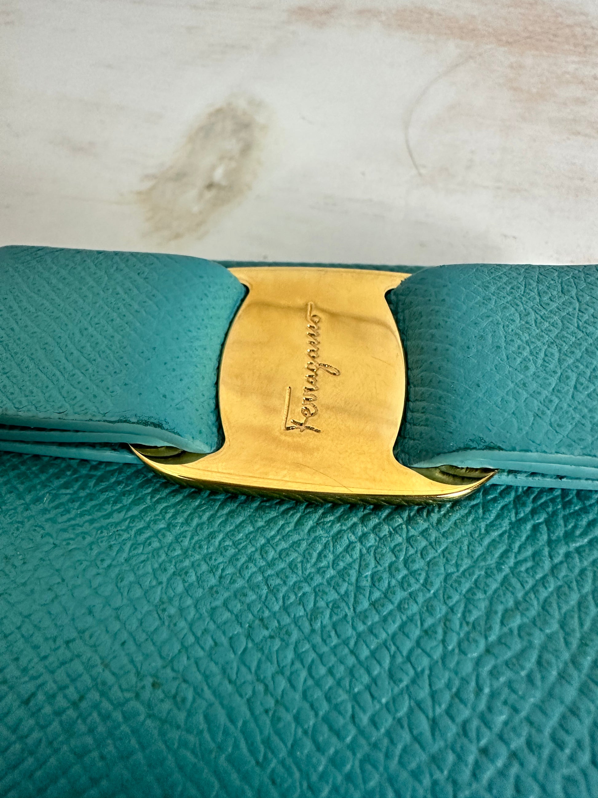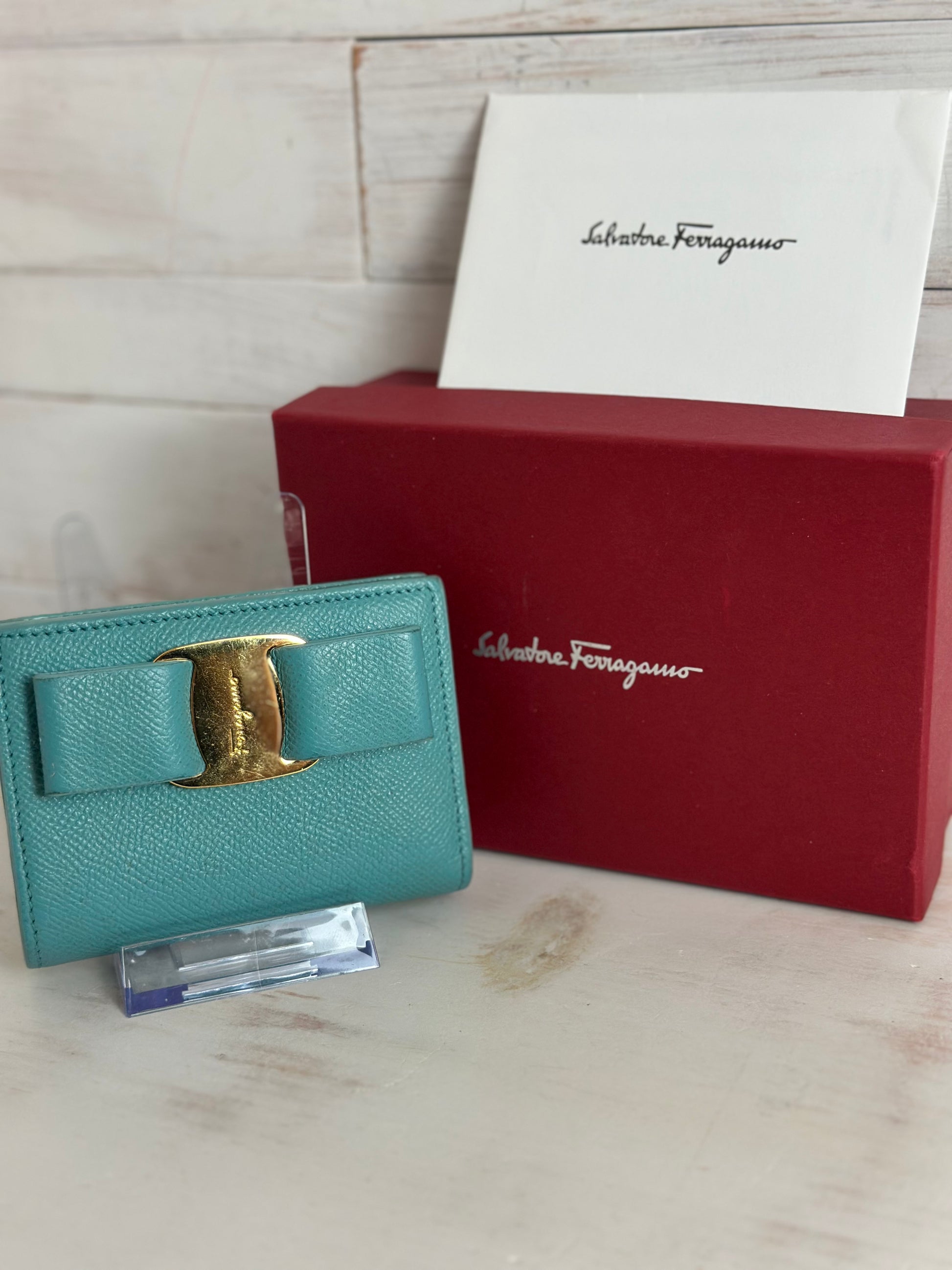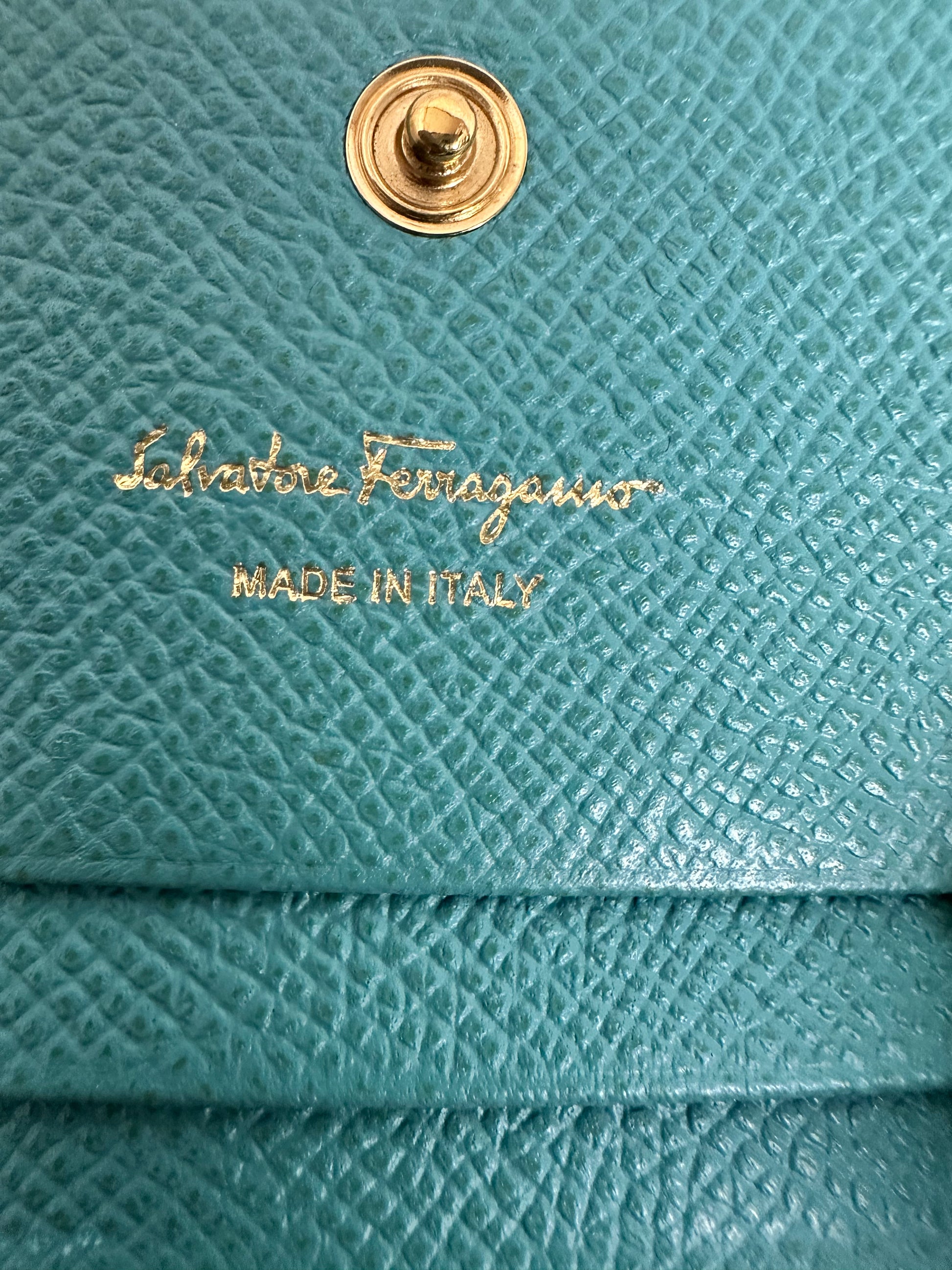 Salvatore Ferragamo Fiocco Vara Tyrone Turquoise Bifold Wallet
