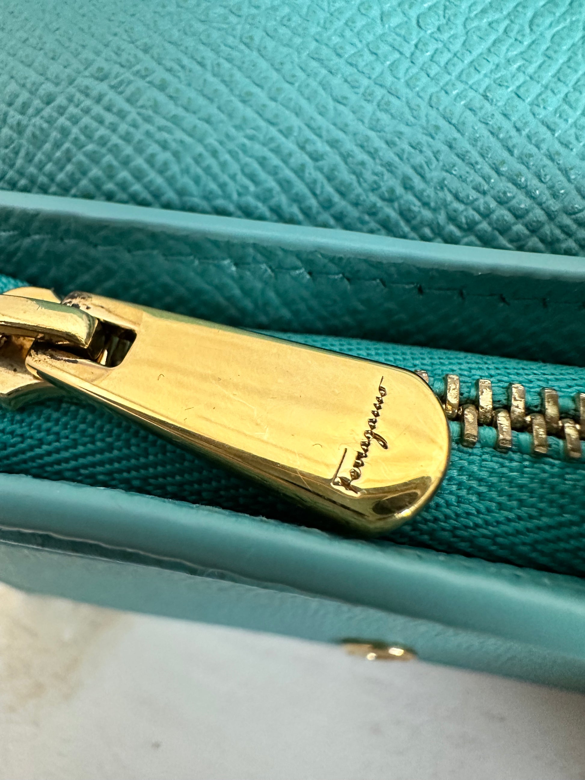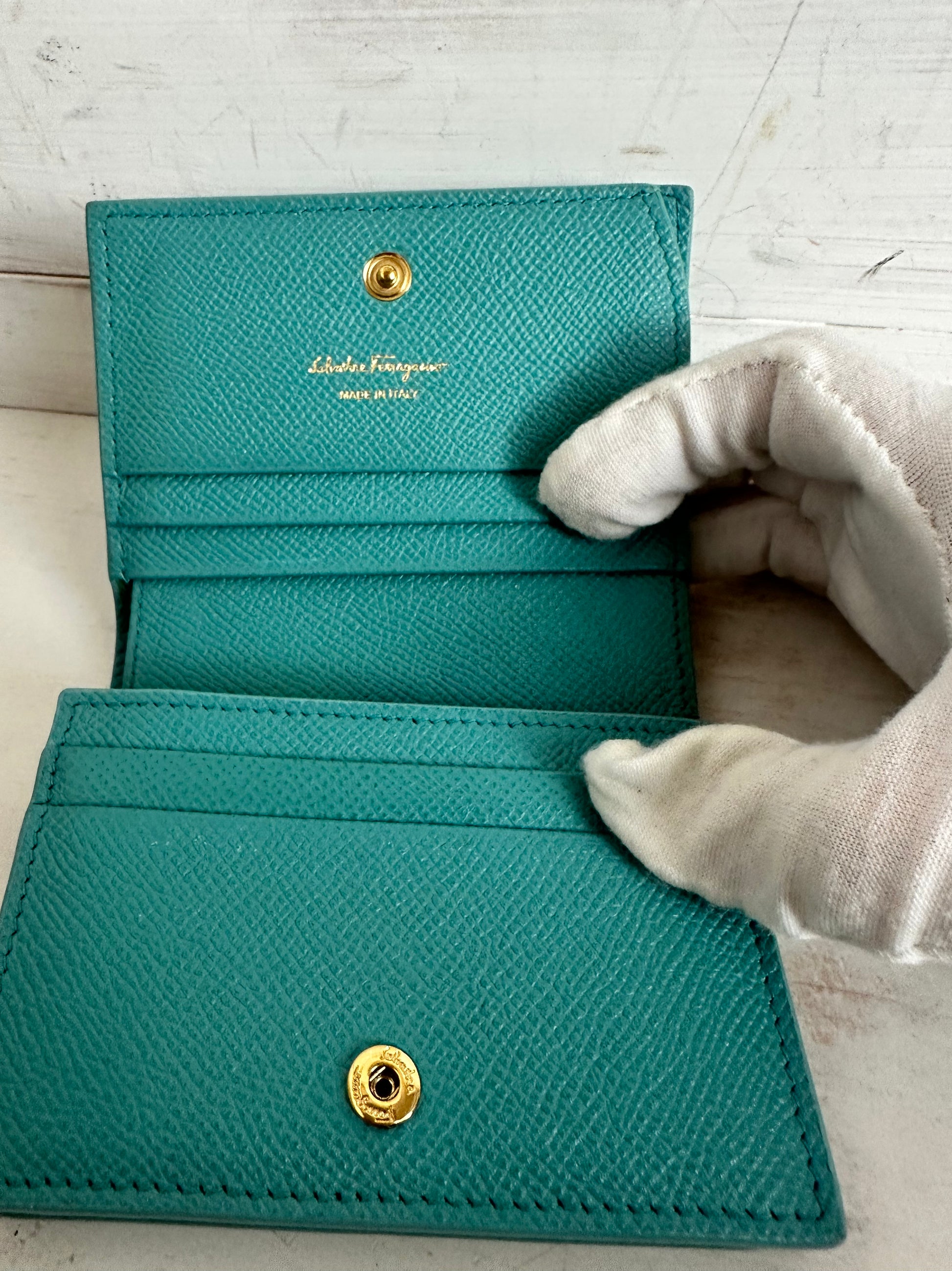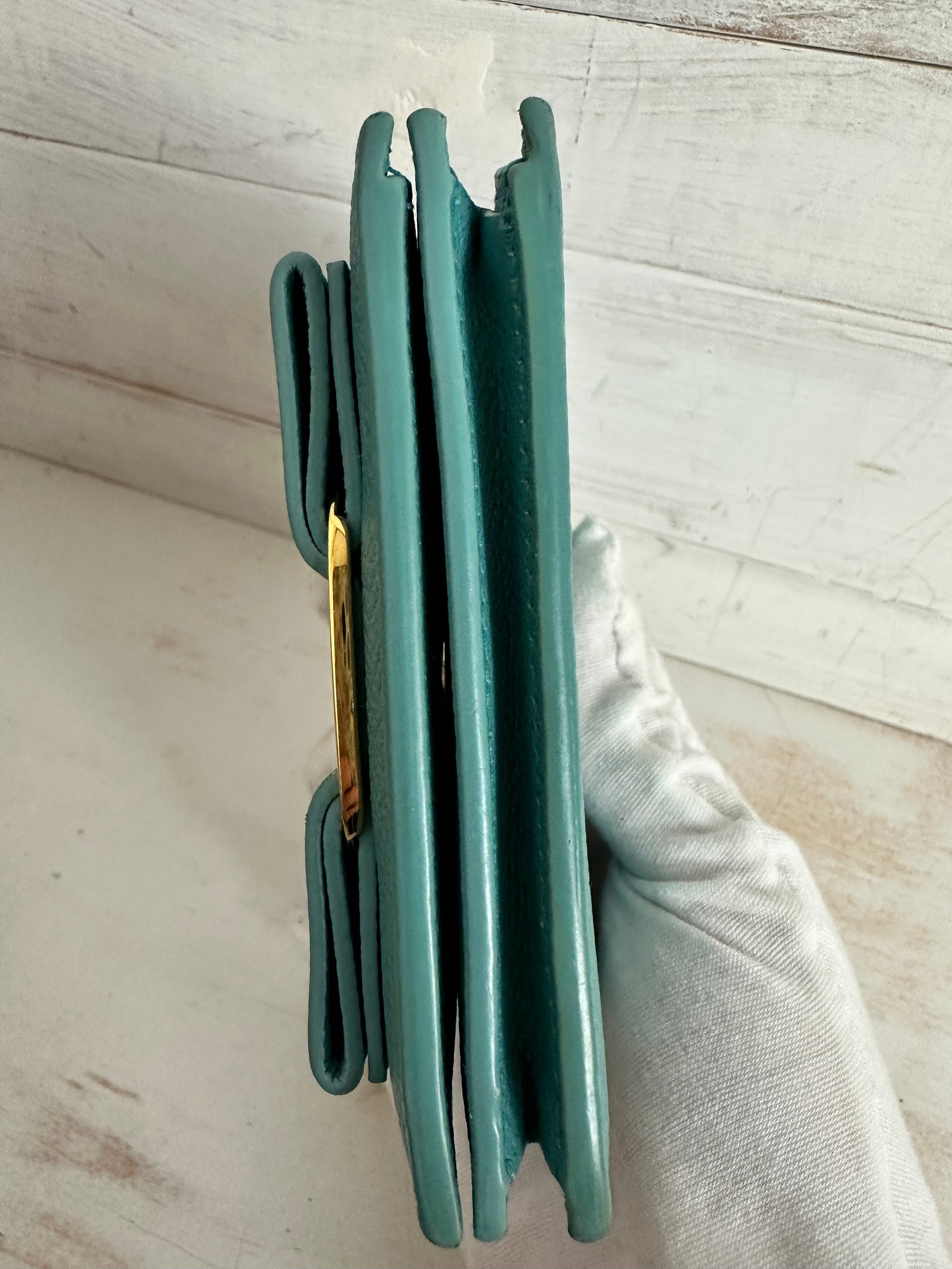 Salvatore Ferragamo Fiocco Vara Tyrone Turquoise Bifold Wallet