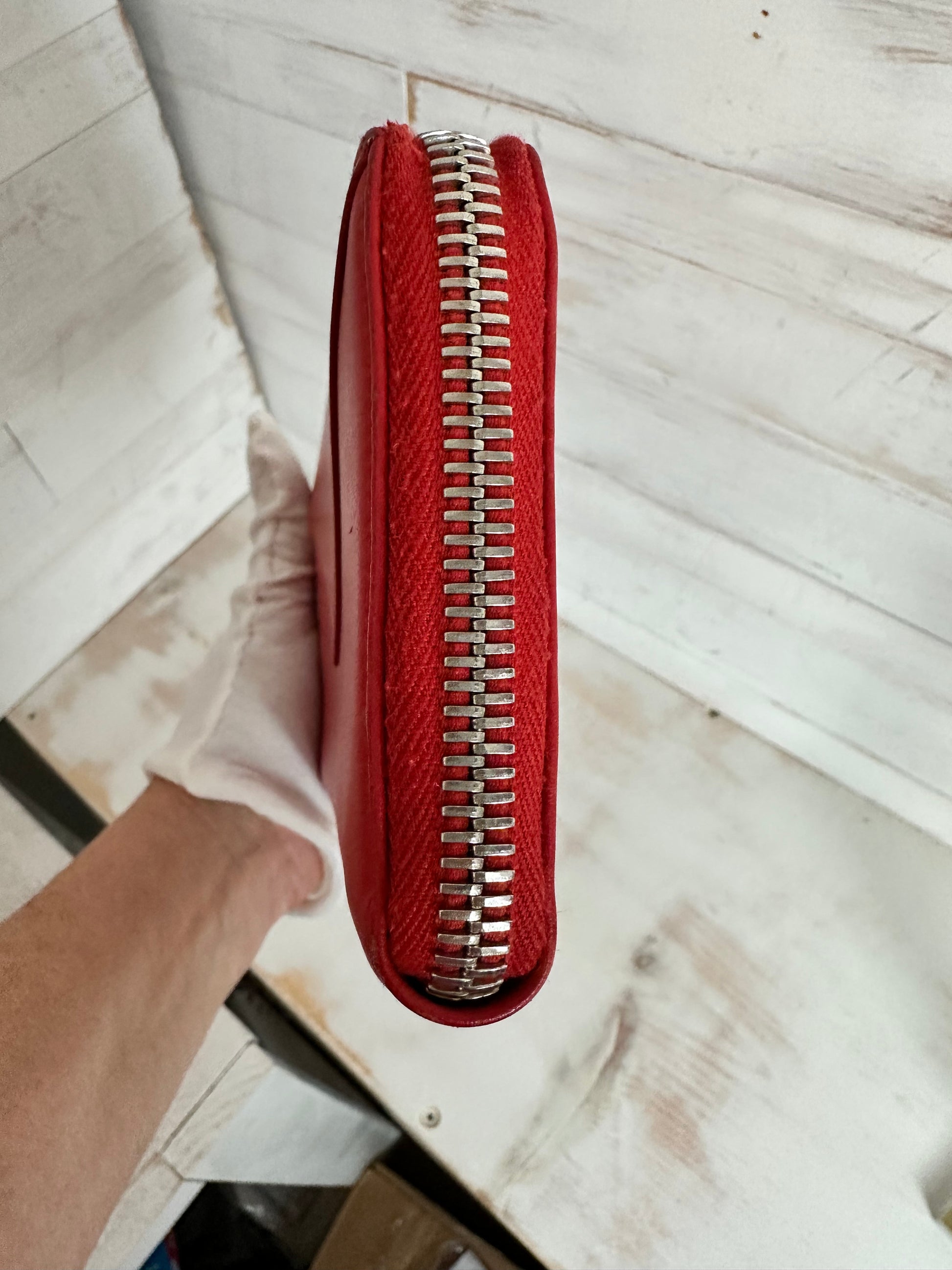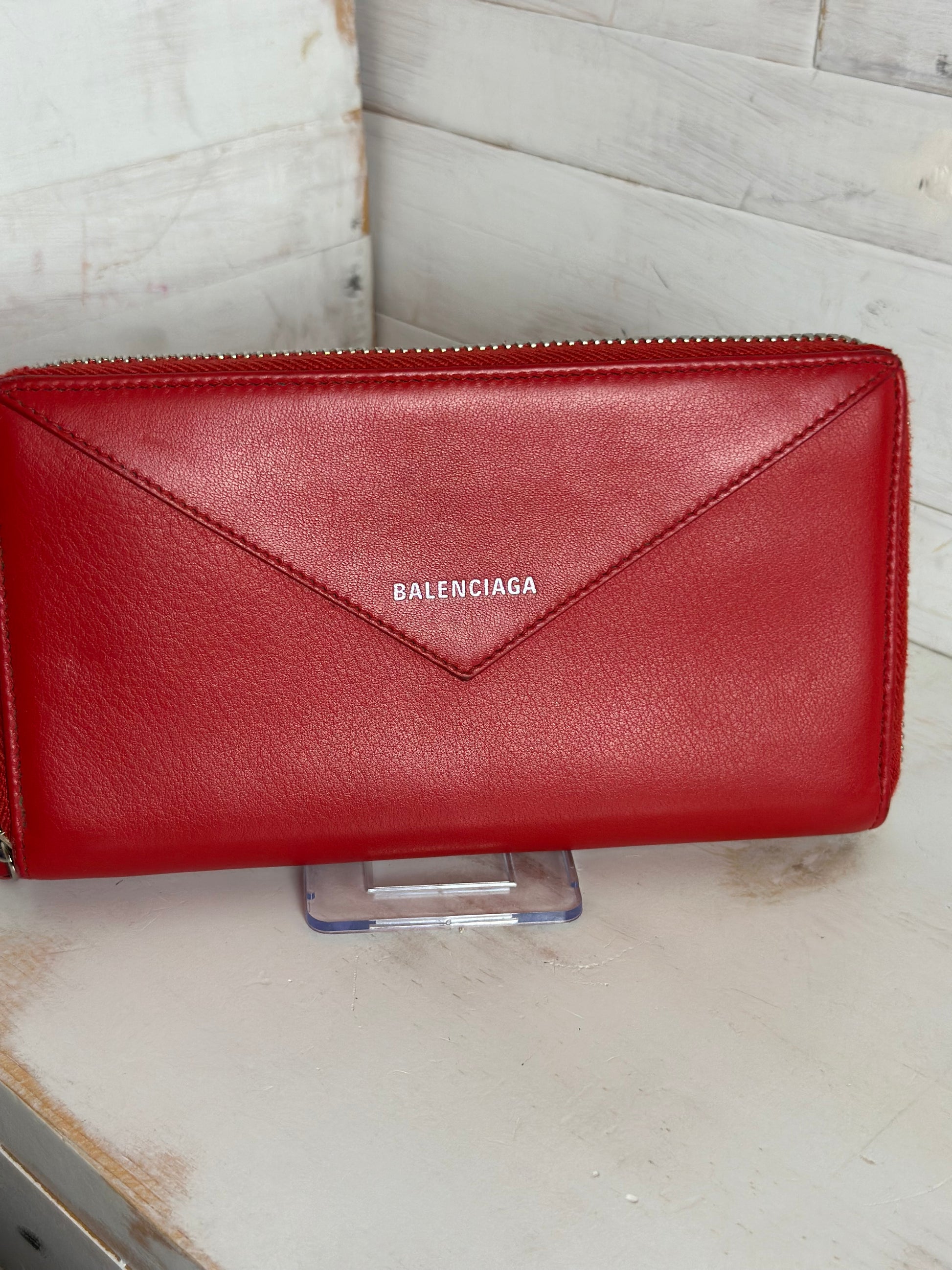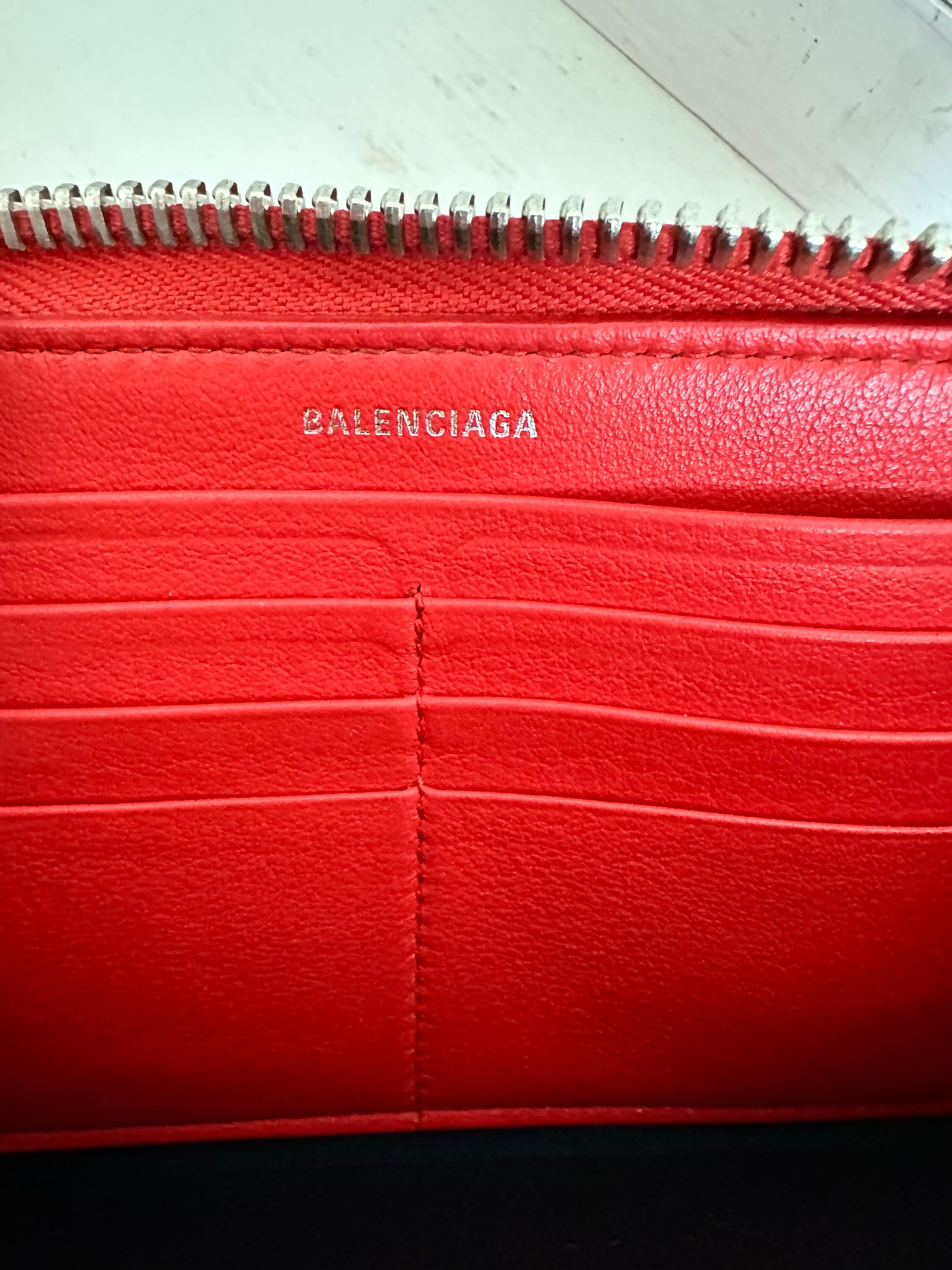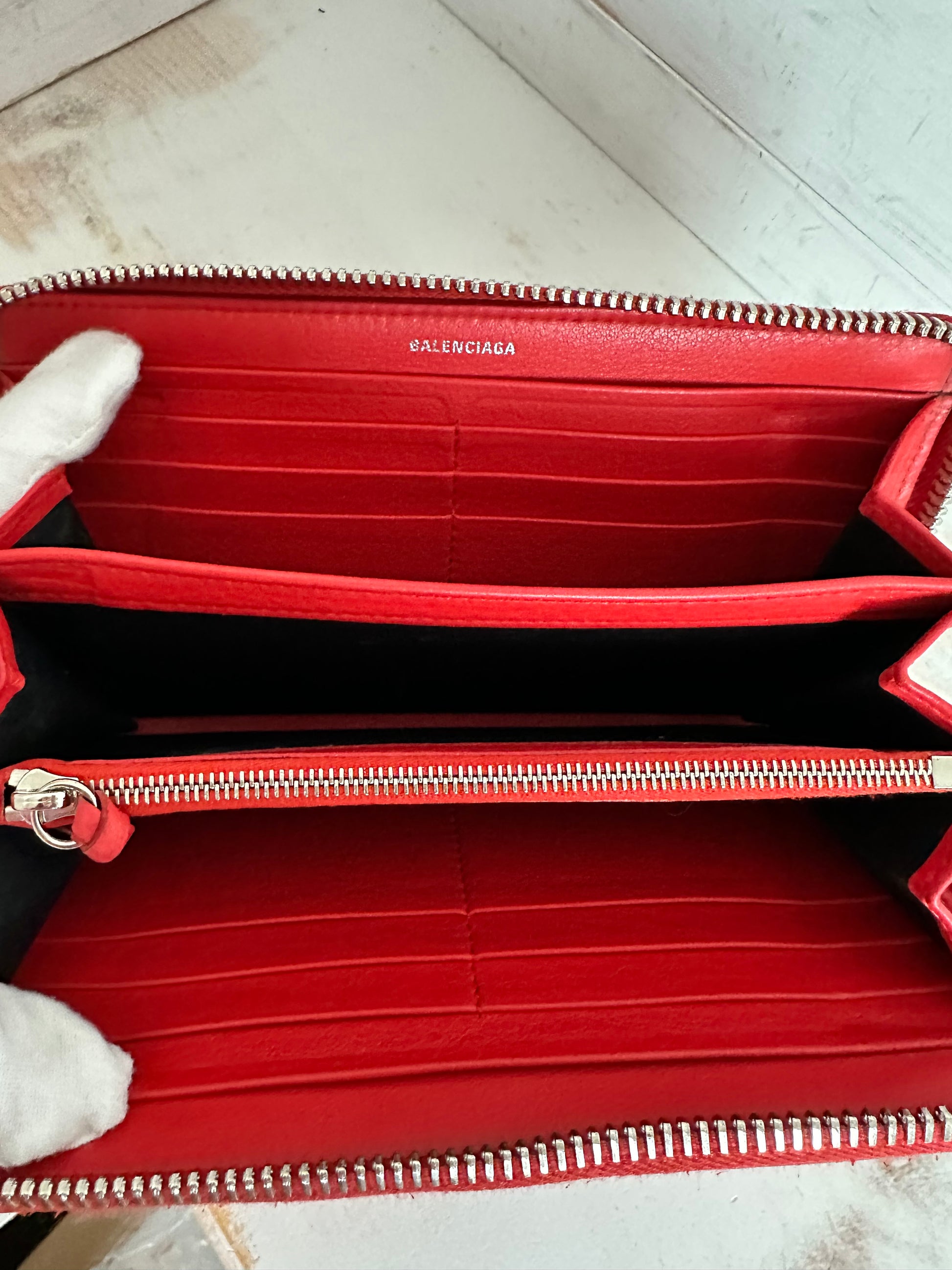 Balenciaga Papier Continental Red Leather Zip Around Wallet