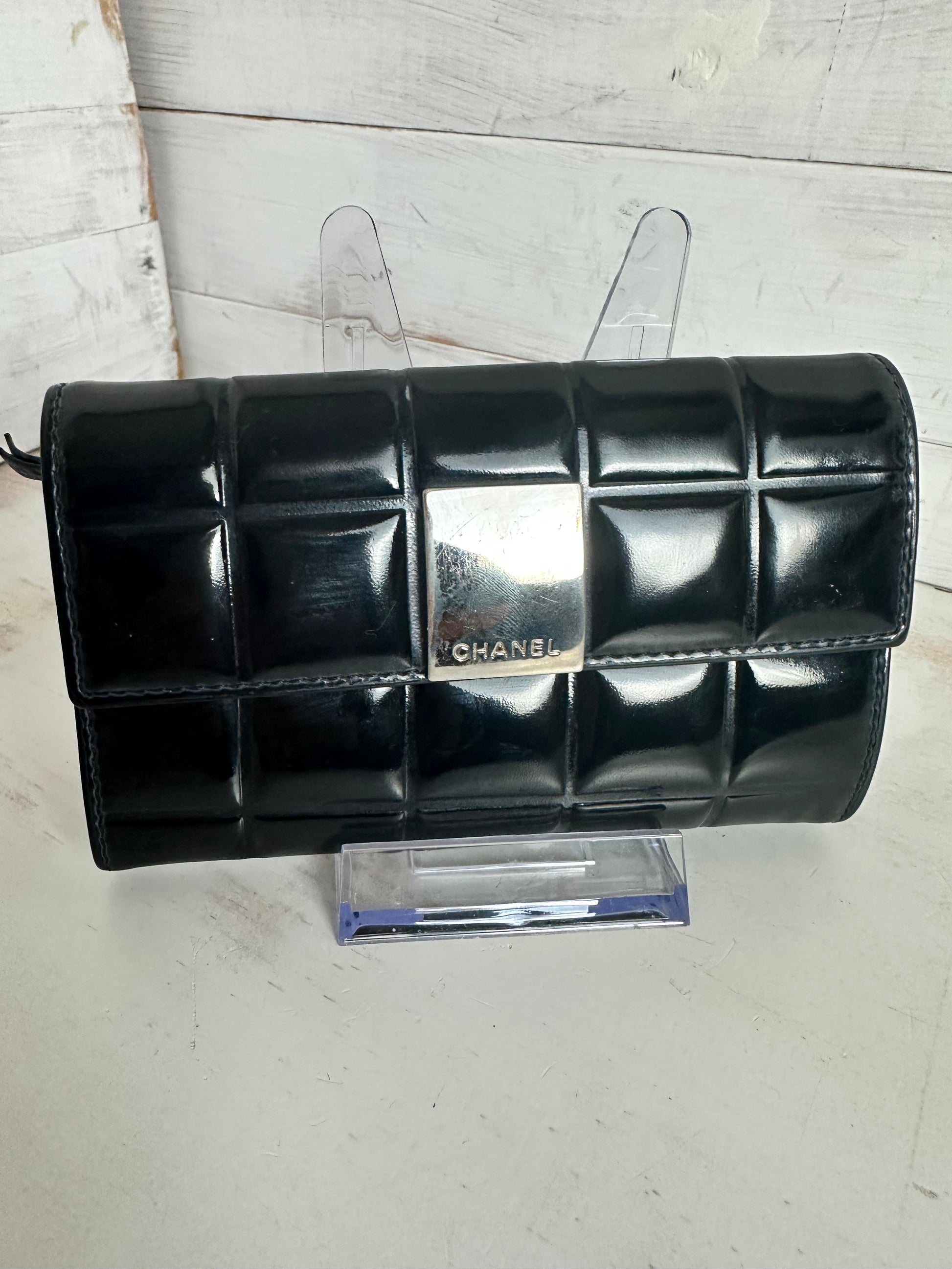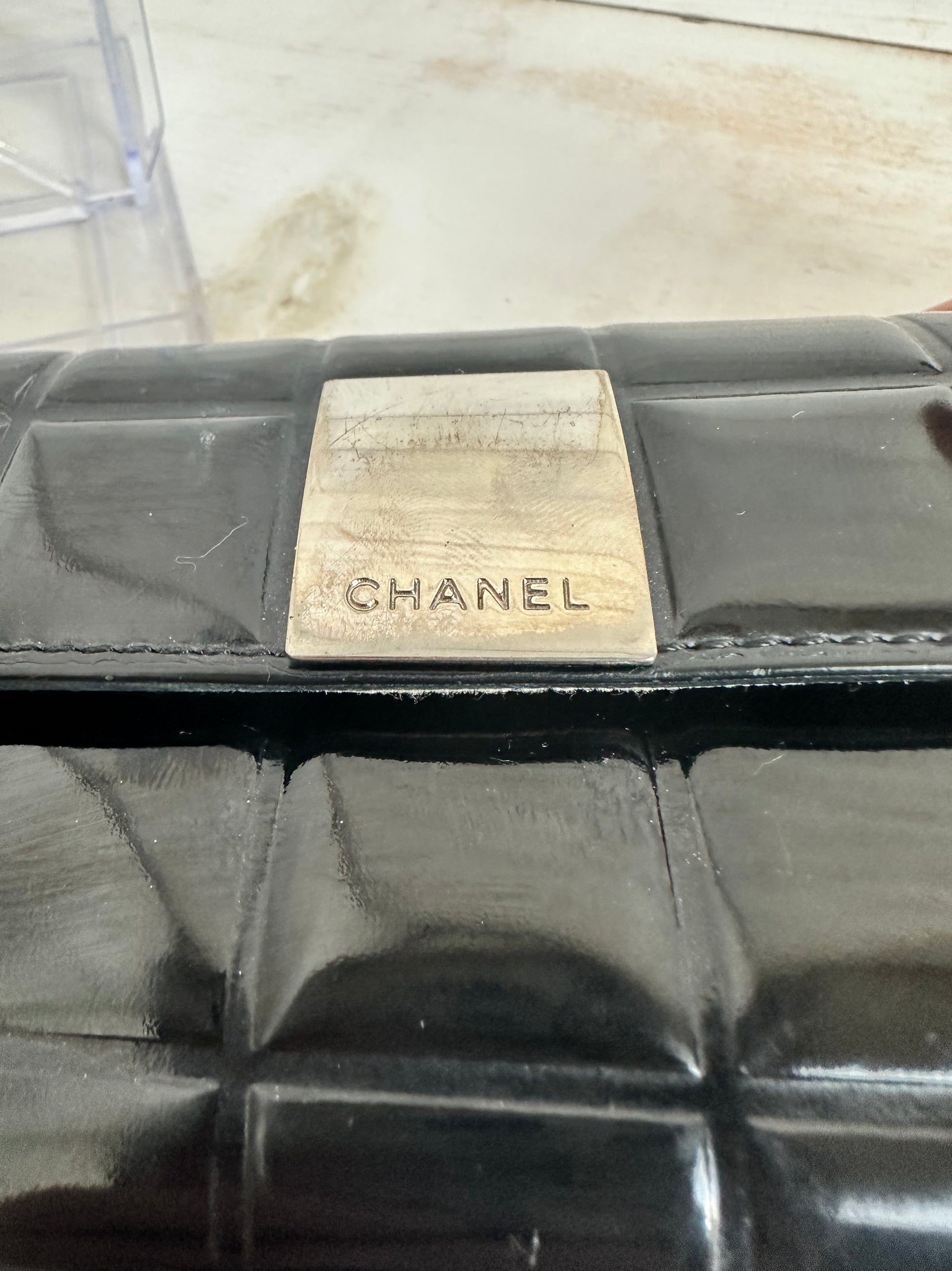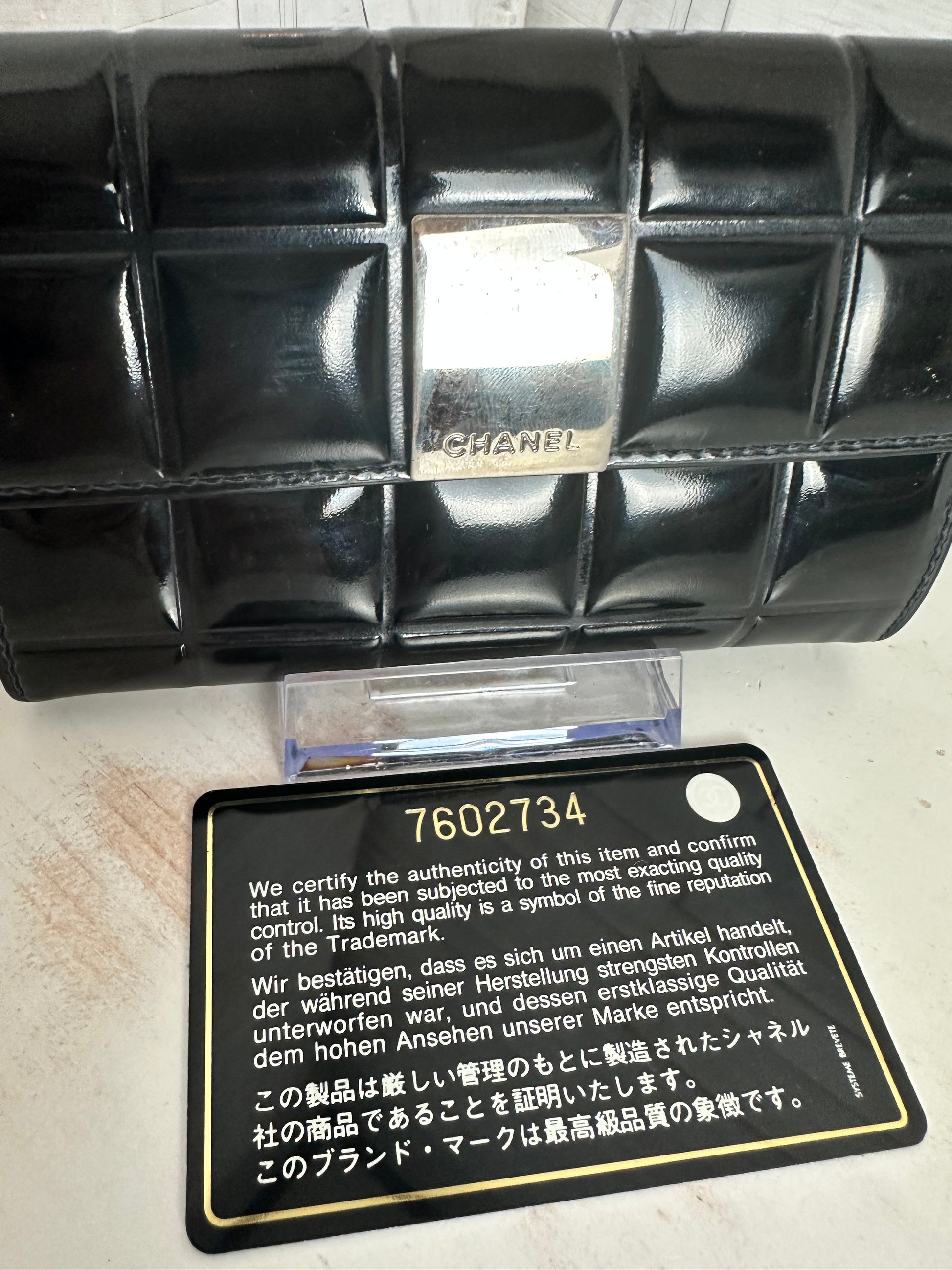 Chanel VINTAGE Patent Black Leather Chocolate Bar Wallet